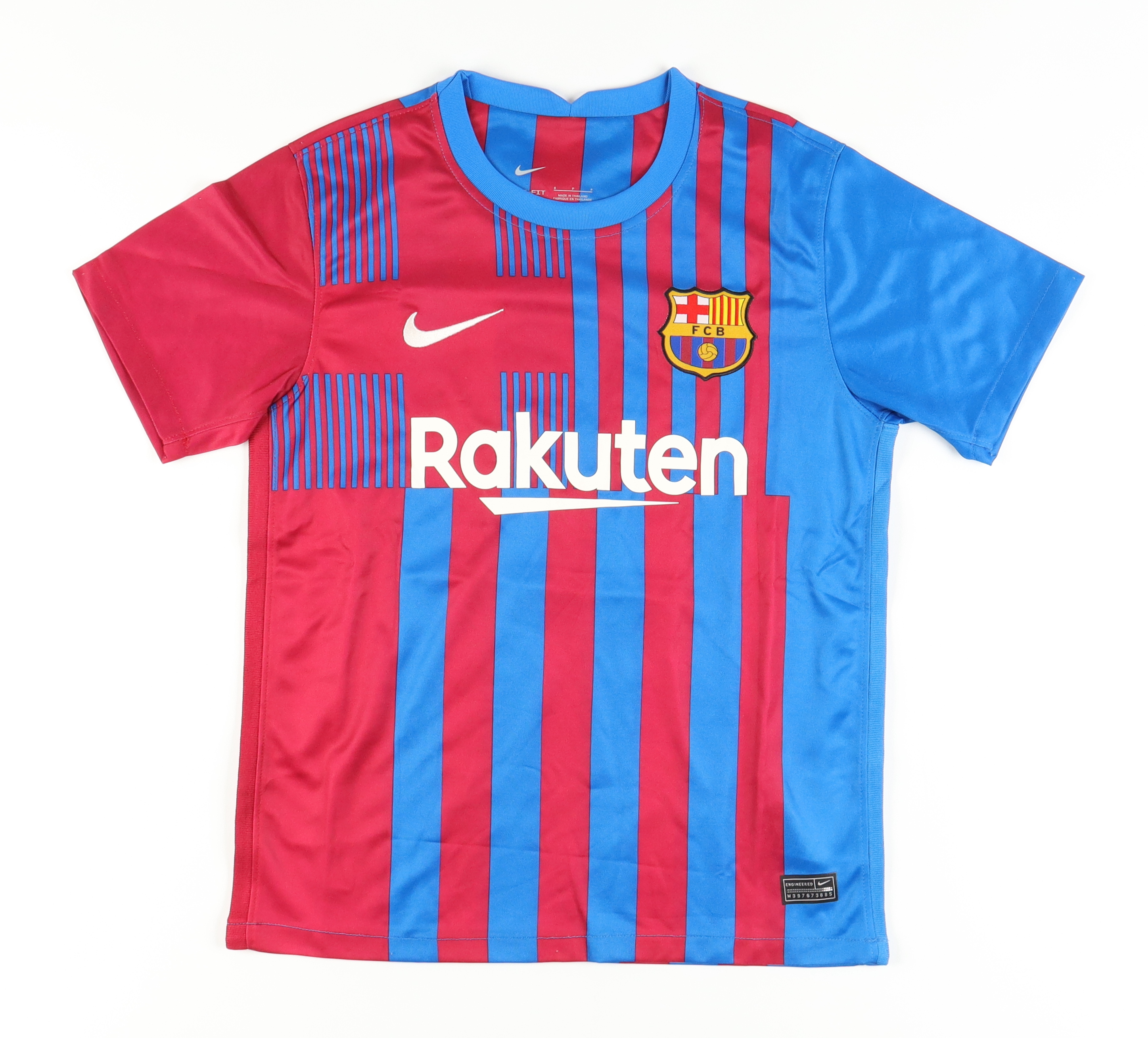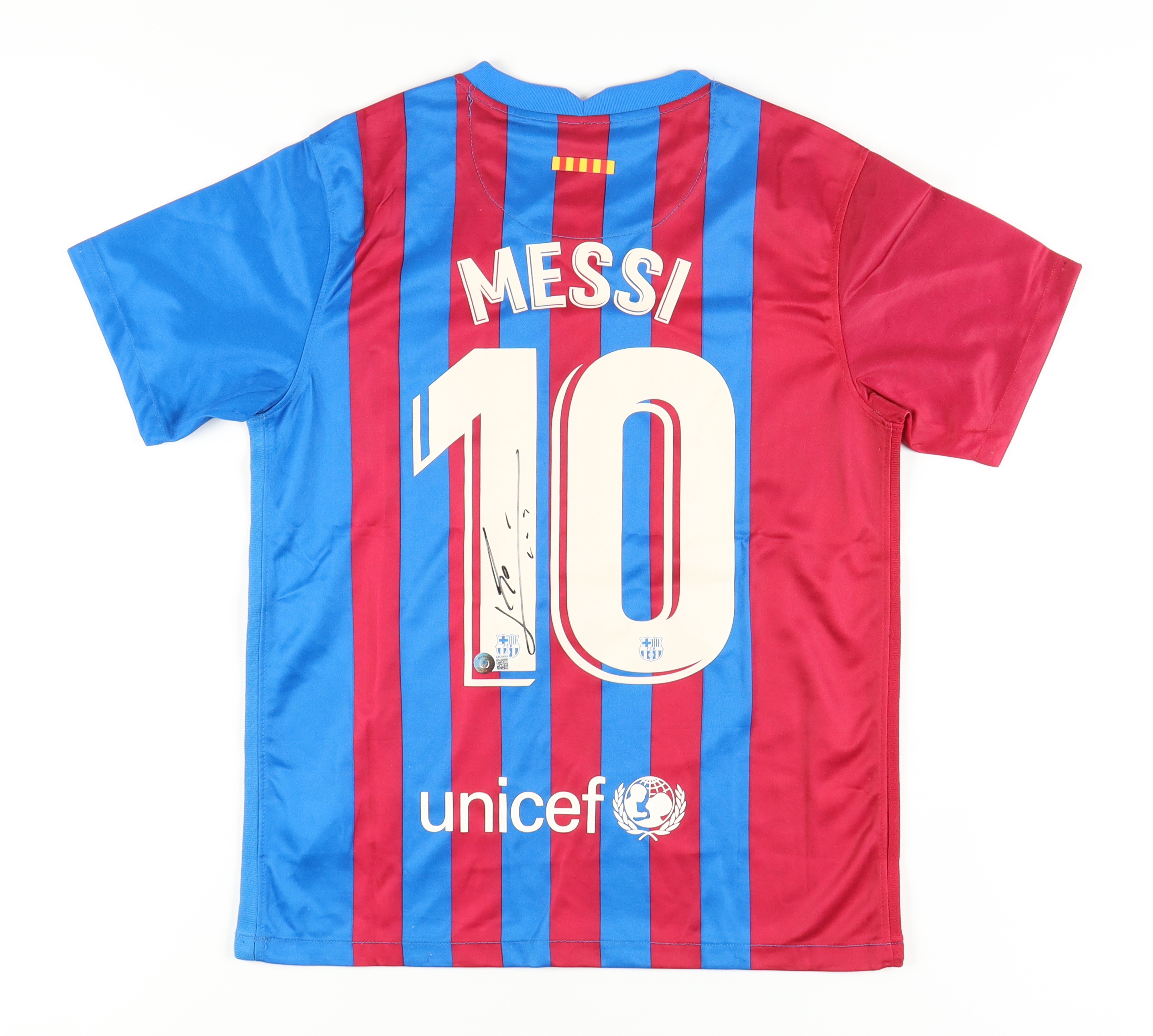 Nike on-field style jersey. Everything printed on, size S. Hand-signed by Lionel Messi.