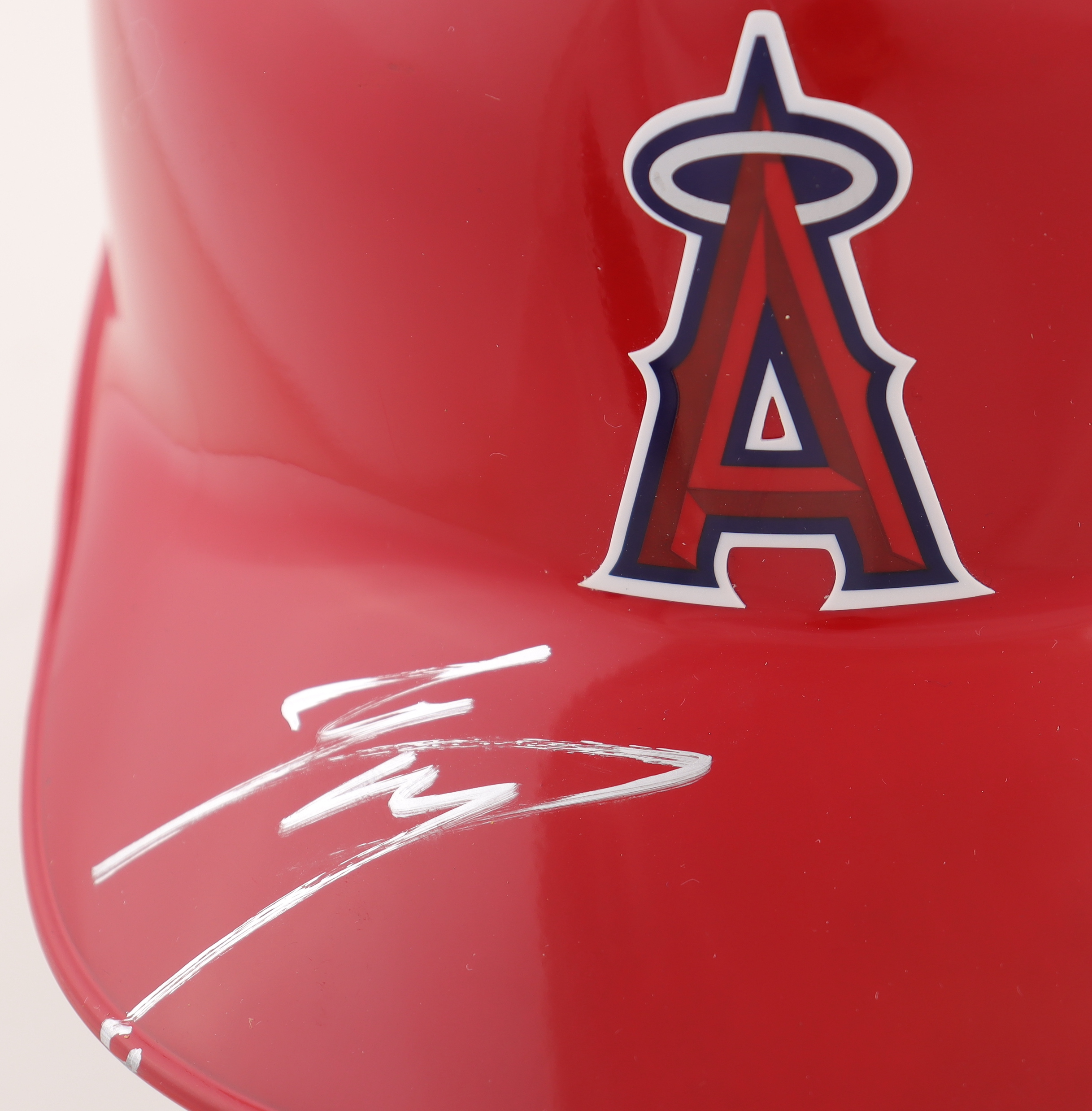 Rawlings Los Angeles Angels replica full-size batting helmet, size 7 3/8. Hand-signed by Shohei Ohtani.