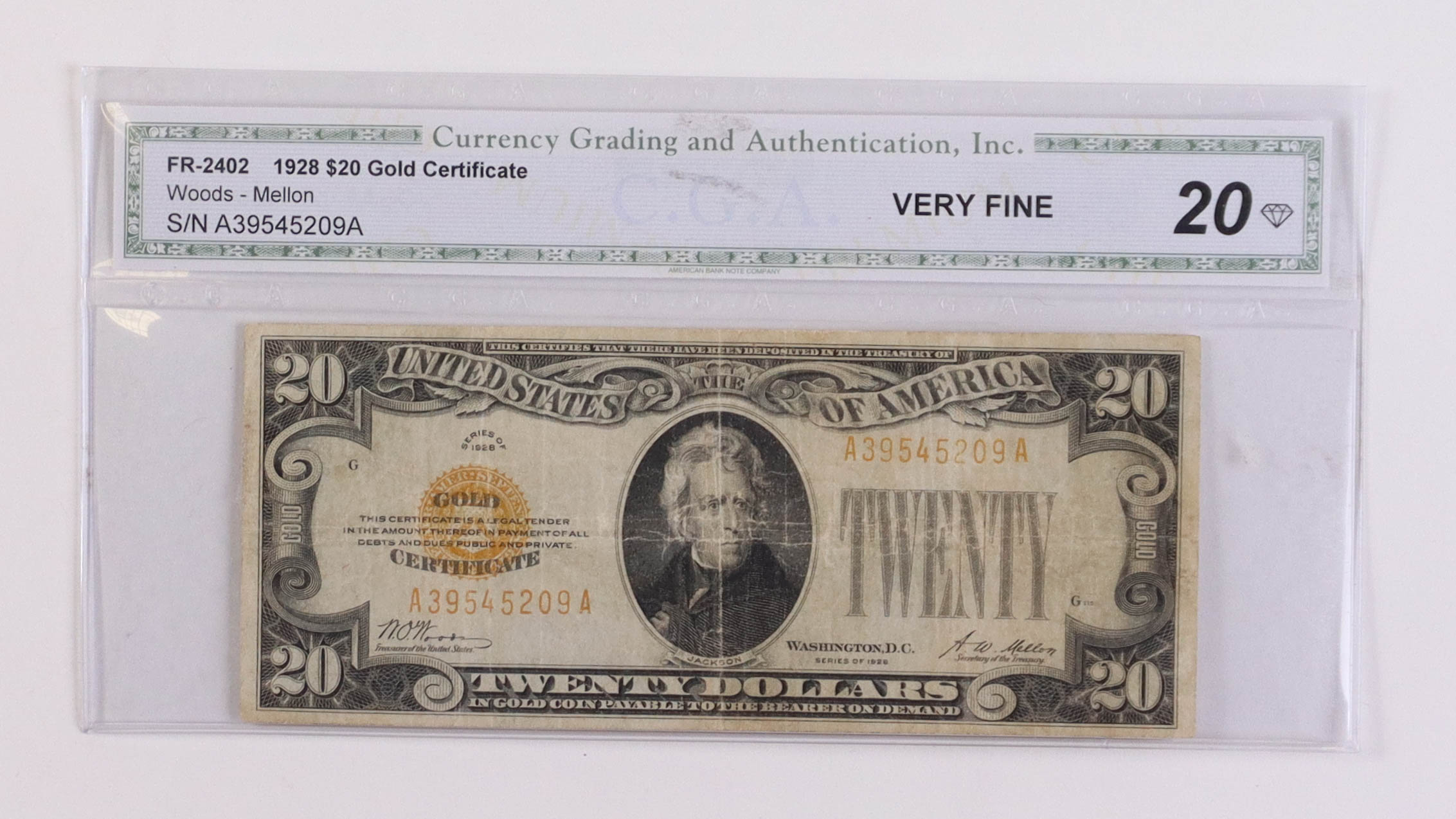 1928 $20 Twenty Dollar U.S. Gold Certificate Bank Note (CGA 20)