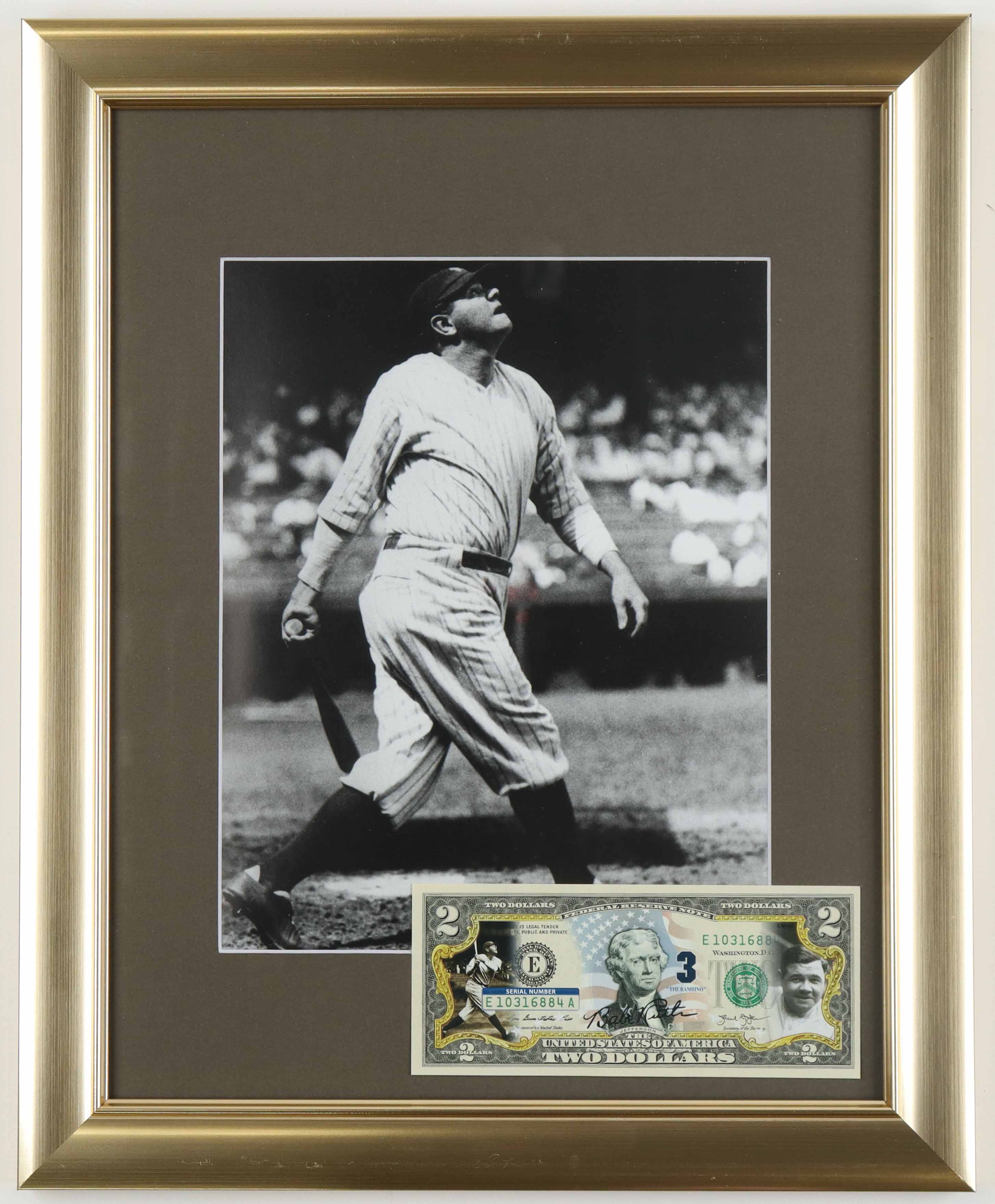 Babe Ruth Yankees Custom Framed Photo with Colorized U.S. Currency