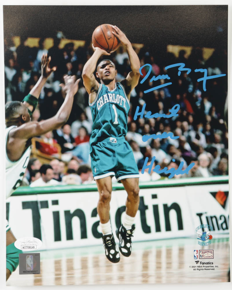 Muggsy Bogues Signed Hornets 8x10 Photo Inscribed "Heart Over Height" (JSA)