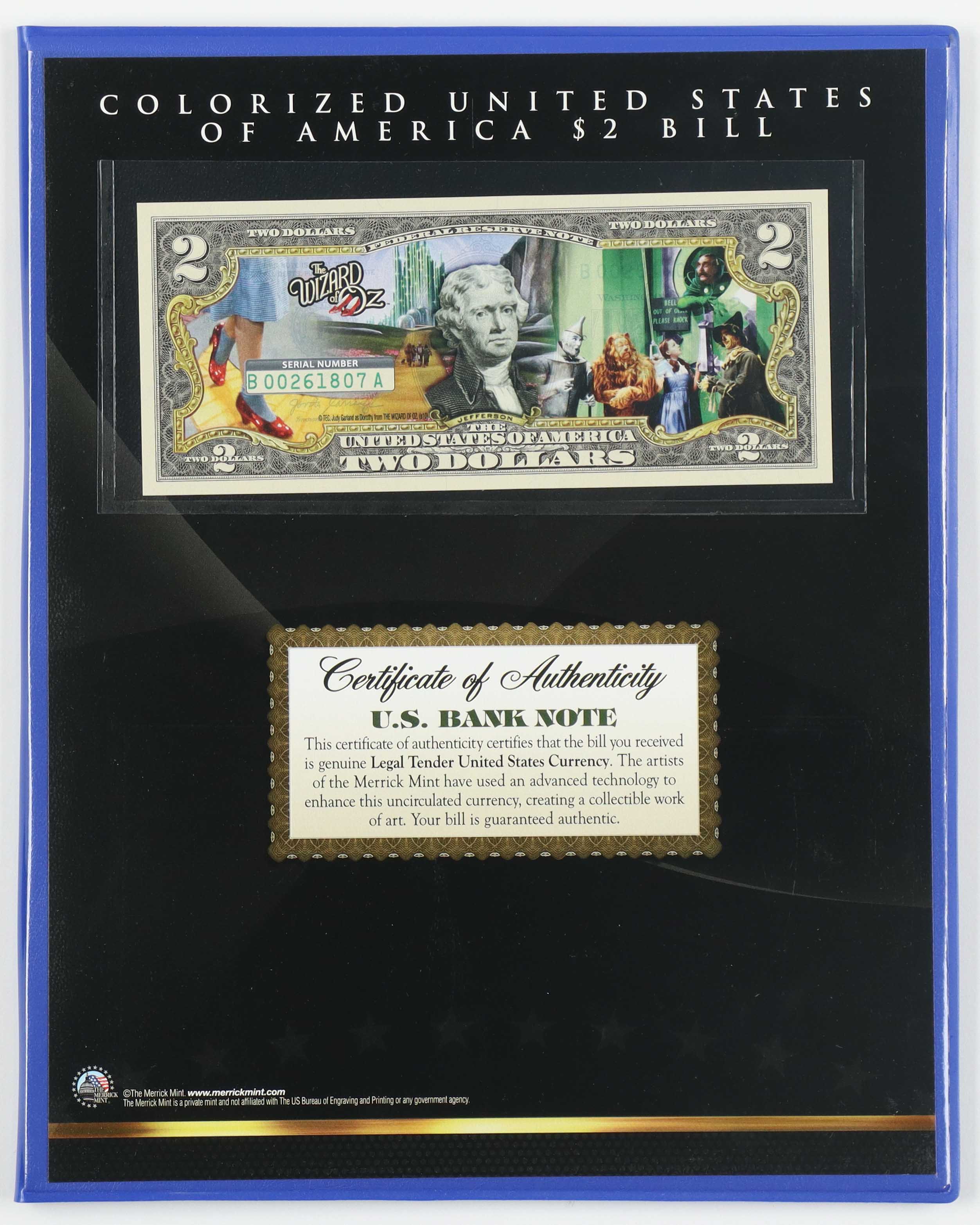 Wizard of Oz Genuine Legal Tender Colorized U.S. $2 Bill Commemorative Edition Bank Note. Includes folder as shown.