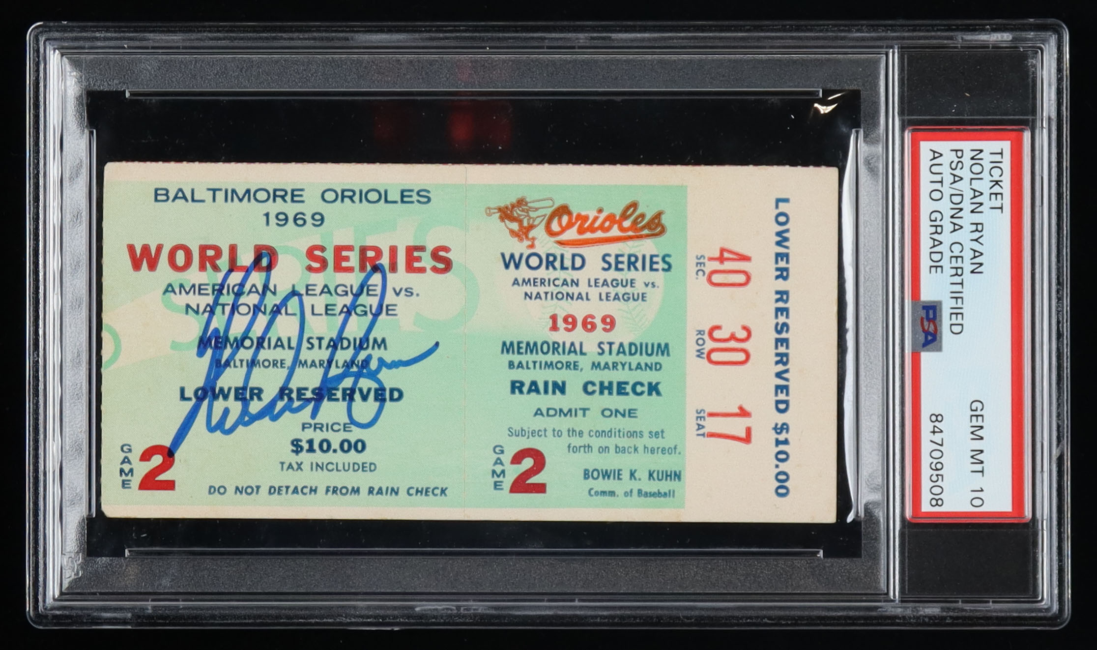 Nolan Ryan Signed 1969 World Series Ticket (PSA)