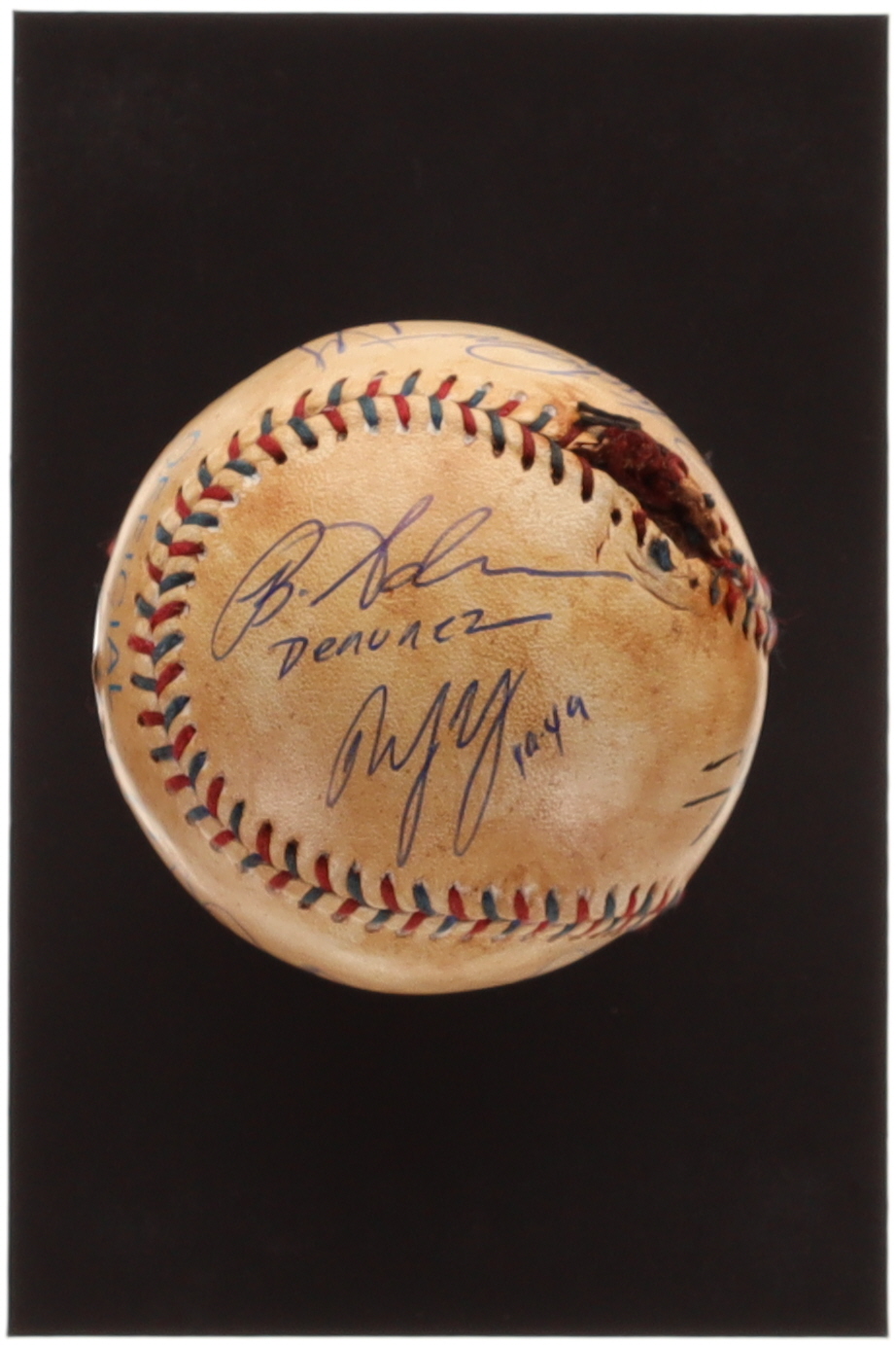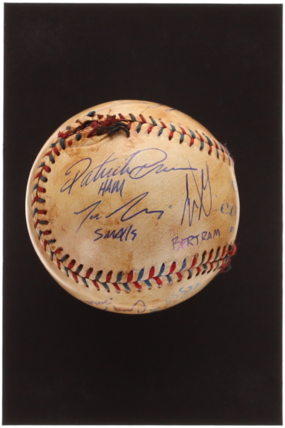 Baseball has been hand-signed by (8) including Patrick Renna, Grant Gelt, Chauncy Leopardi, Tom Guiry, Shane Obedzinski, Victor DiMattia, Marty York and Brandon Adams. Please note, the Ruth signature is a facsimile.