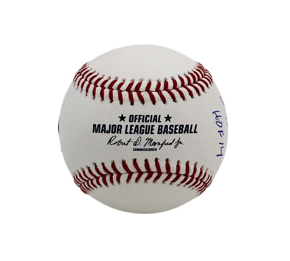 Rawlings Official Major League Hall of Fame logo baseball. Hand-signed and inscribed by Greg Maddux (Atlanta Braves, HOF).