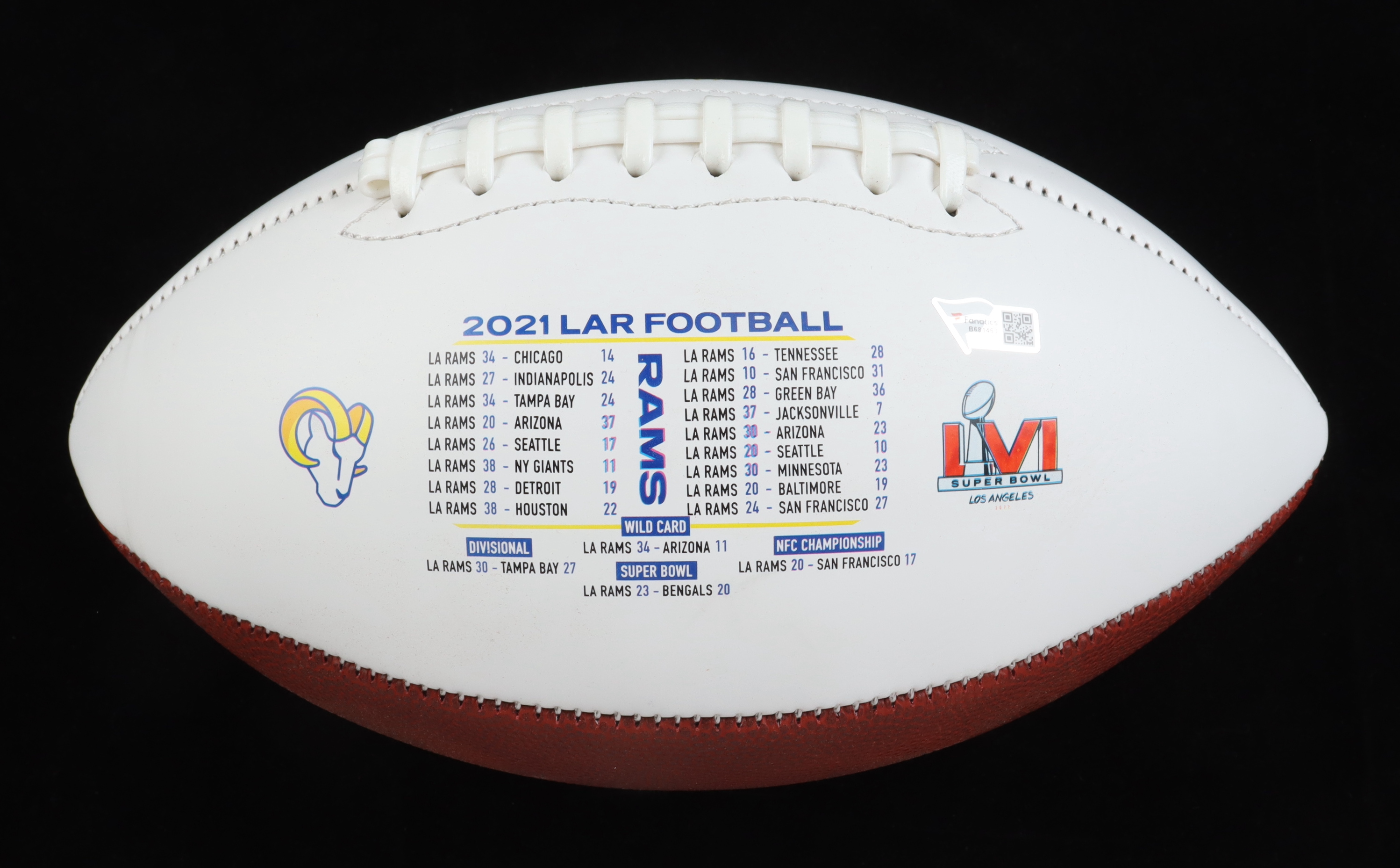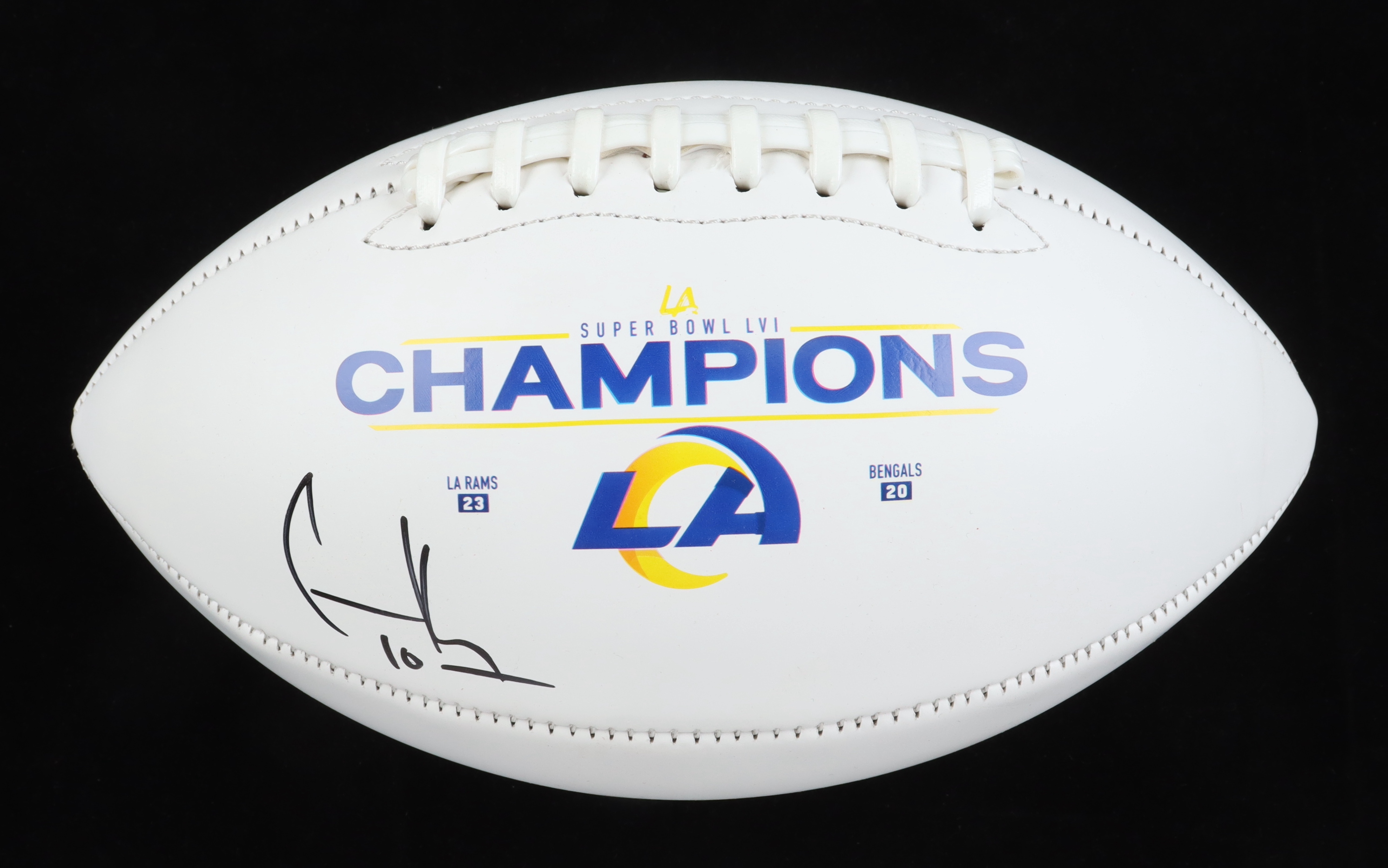 Super Bowl LVI Champions Los Angeles Rams logo football has been hand-signed by Cooper Kupp.