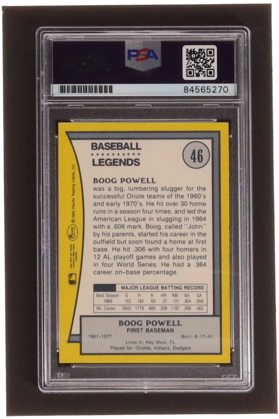 Boog Powell Signed 1990 Pacific Legends #46 (PSA)