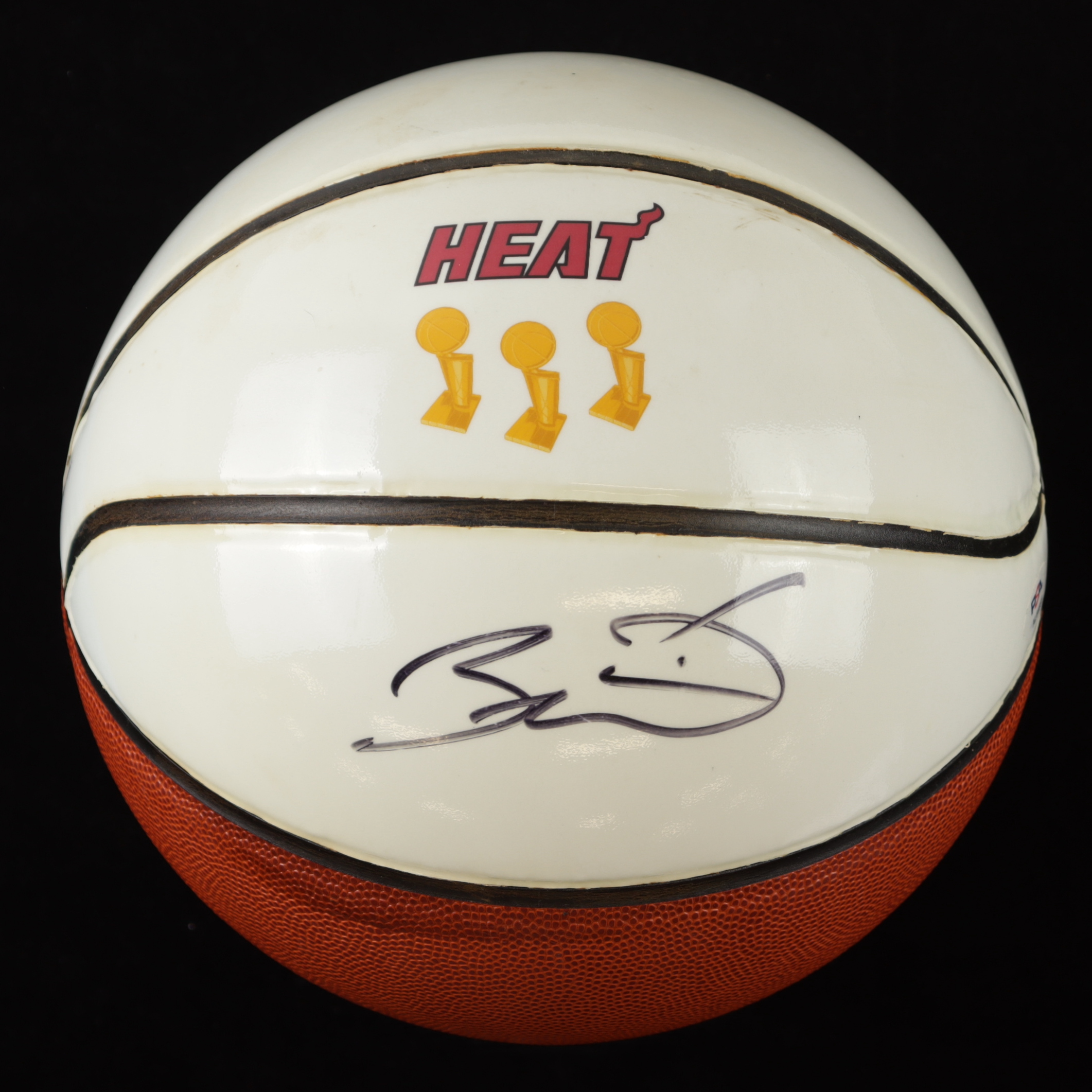 Miami Heat logo basketball has been hand-signed by Dwayne Wade. Please note, the basketball shows signs of aging.