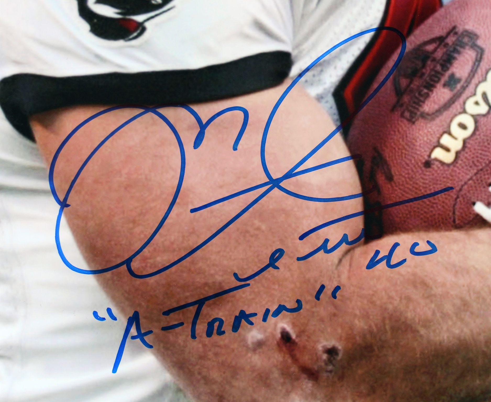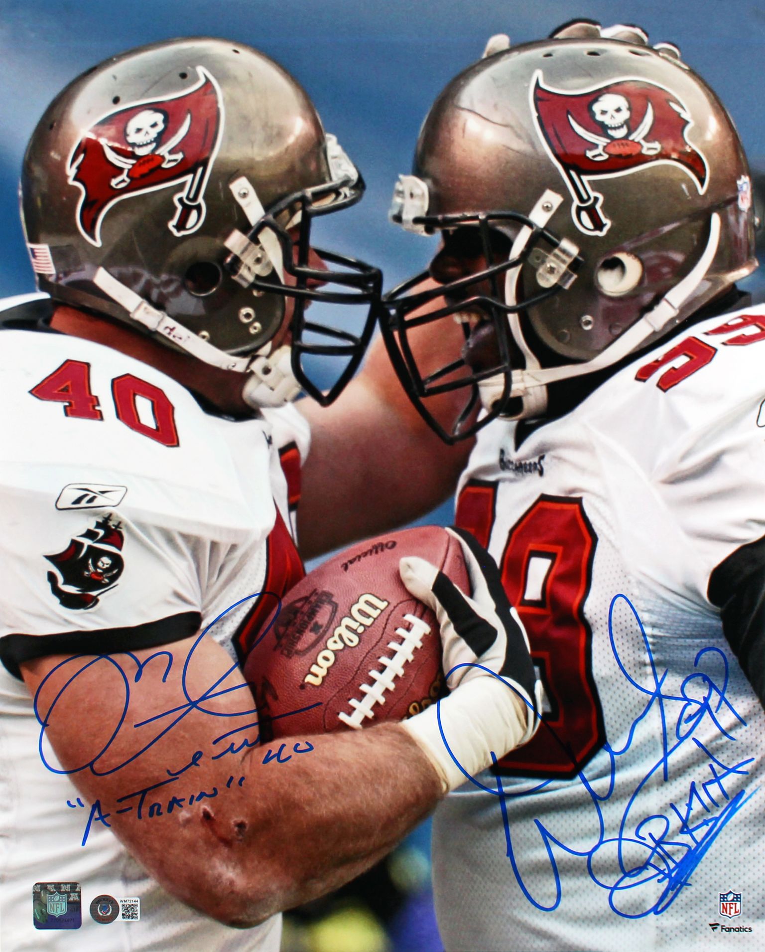 Photo measures 16" x 20" in size and has been hand-signed and inscribed by Warren Sapp (Tampa Bay Buccaneers, HOF) and Mike Alstott (Tampa Bay Buccaneers).
