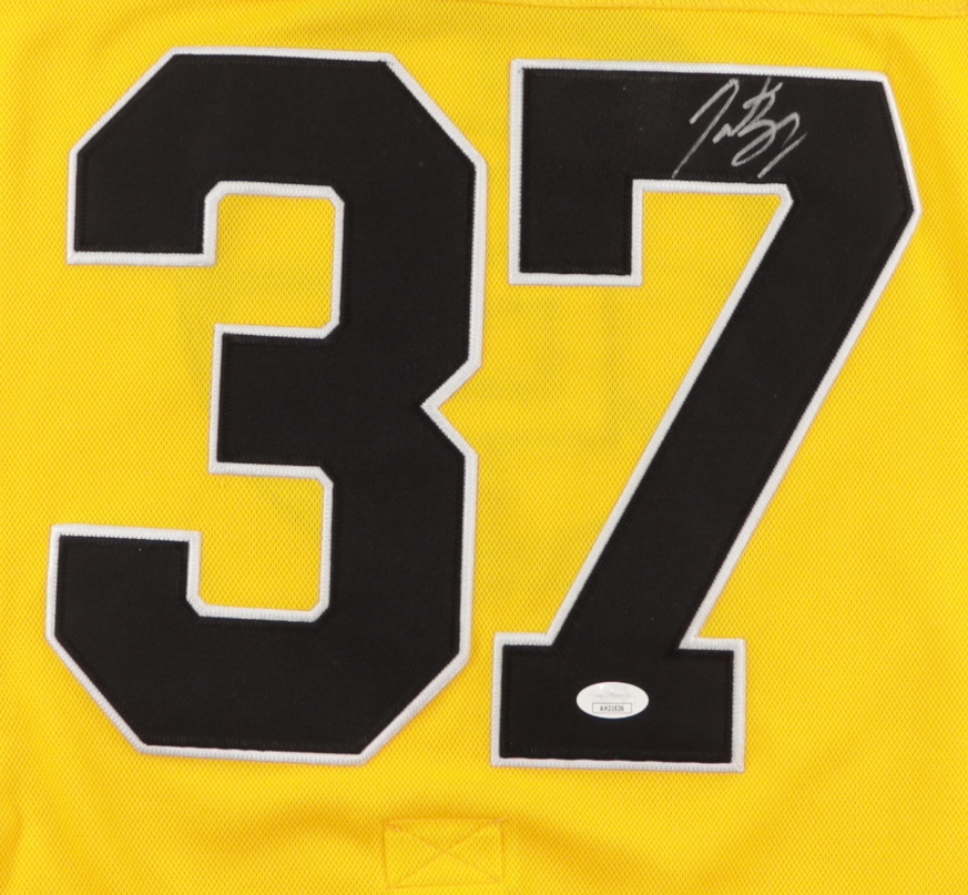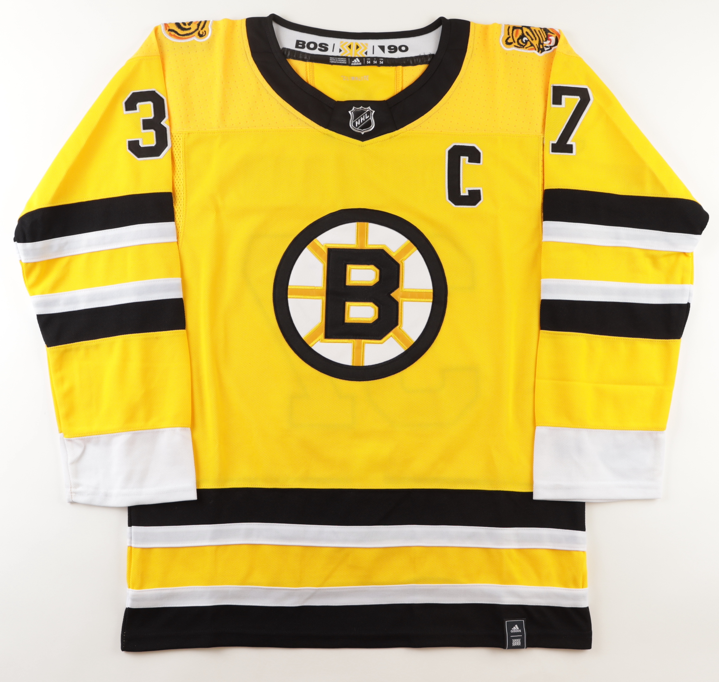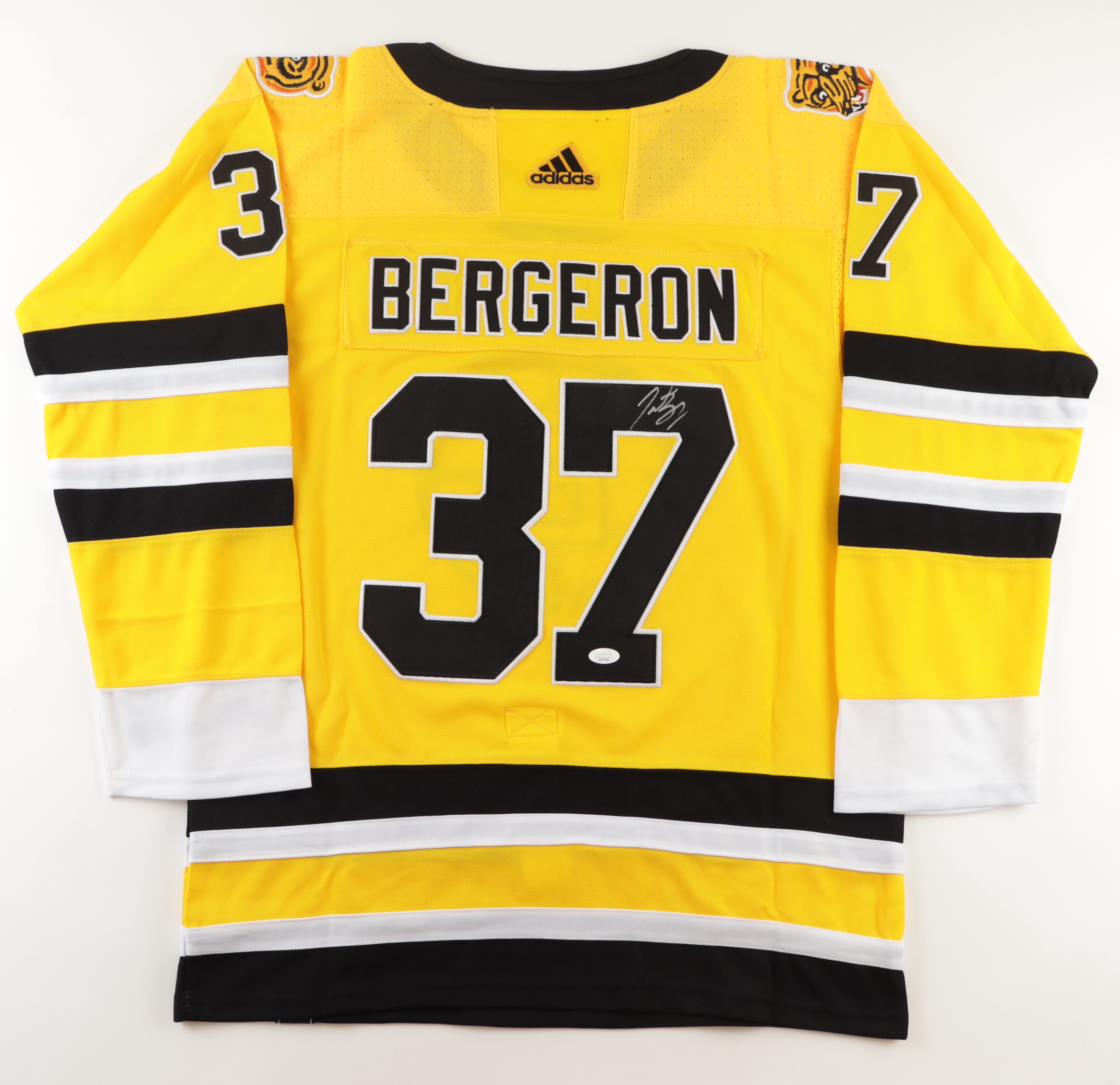 On-ice style jersey. Everything sewn on, size 54. Hand-signed by Patrice Bergeron.