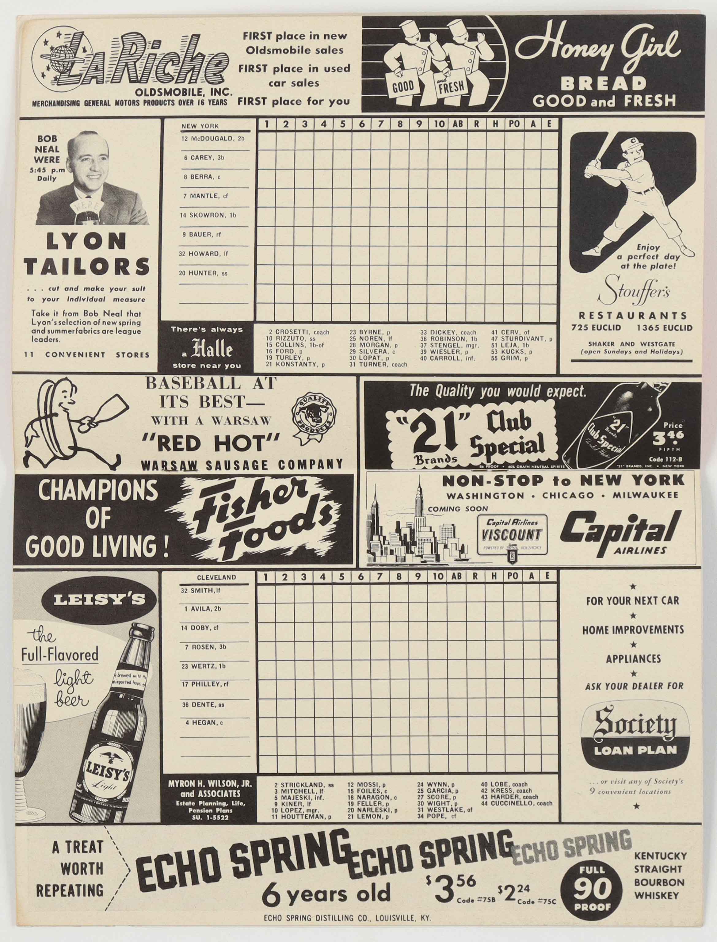 Vintage 1955 Cleveland Indians program and un-scored score card. Please note, the program is unsigned, shows signs of natural aging and creasing on the cover.