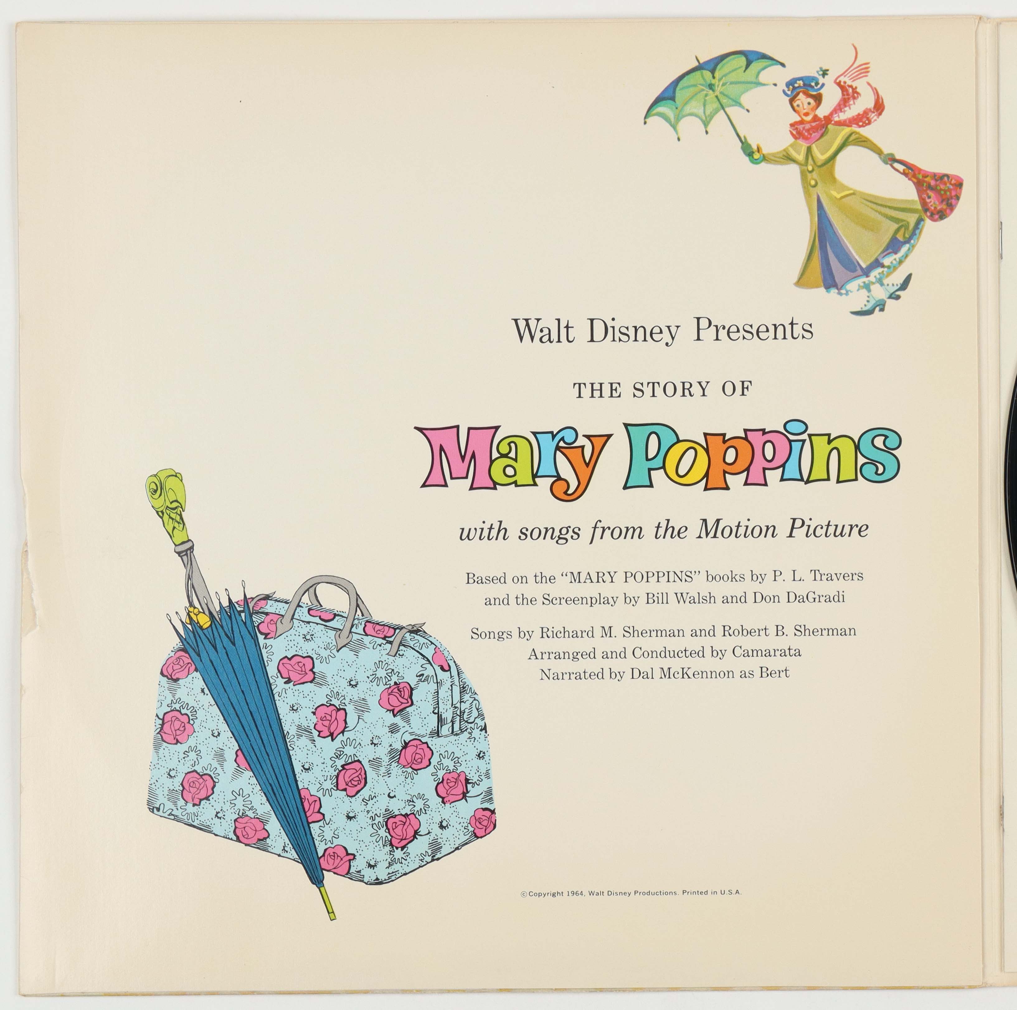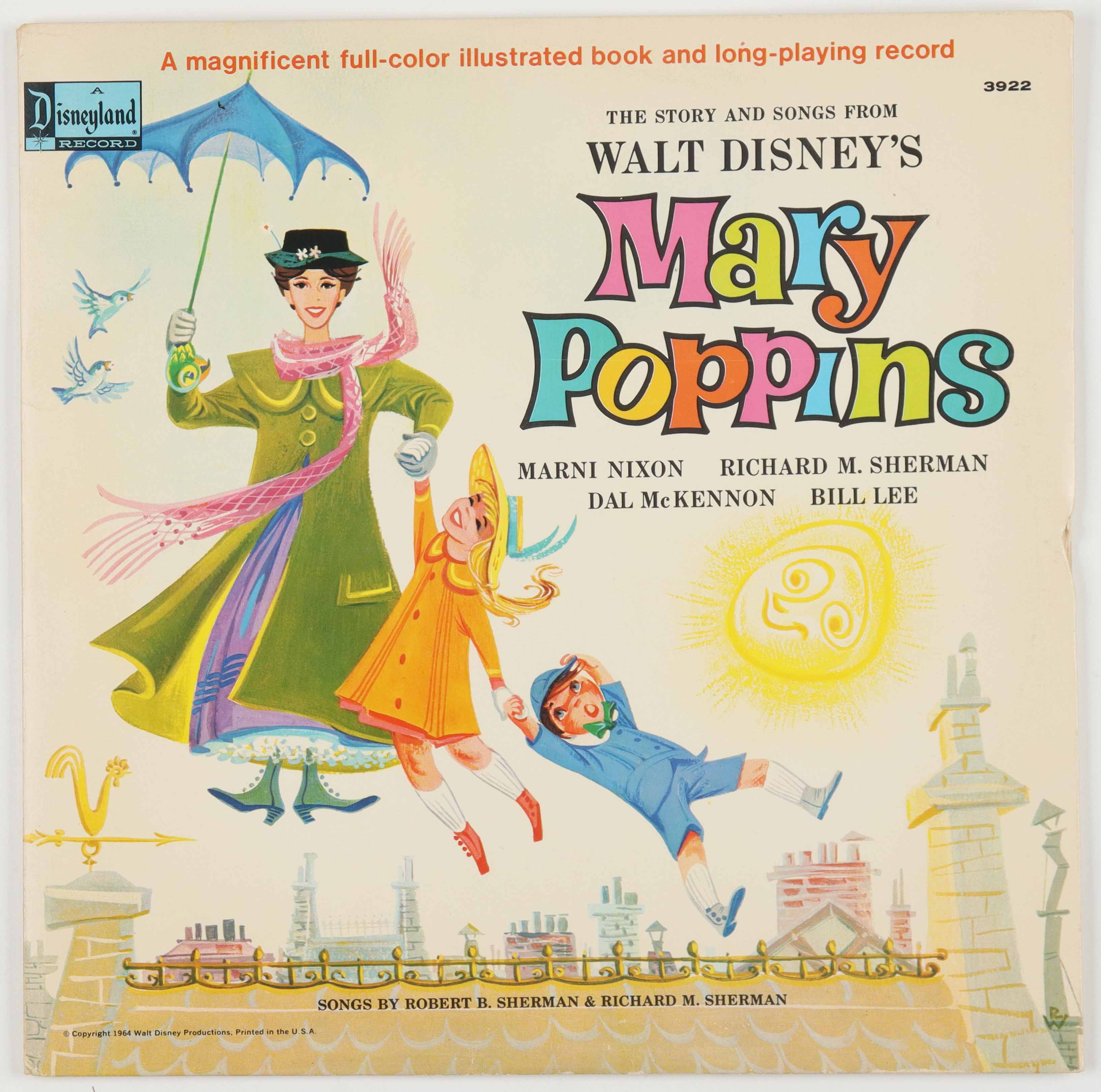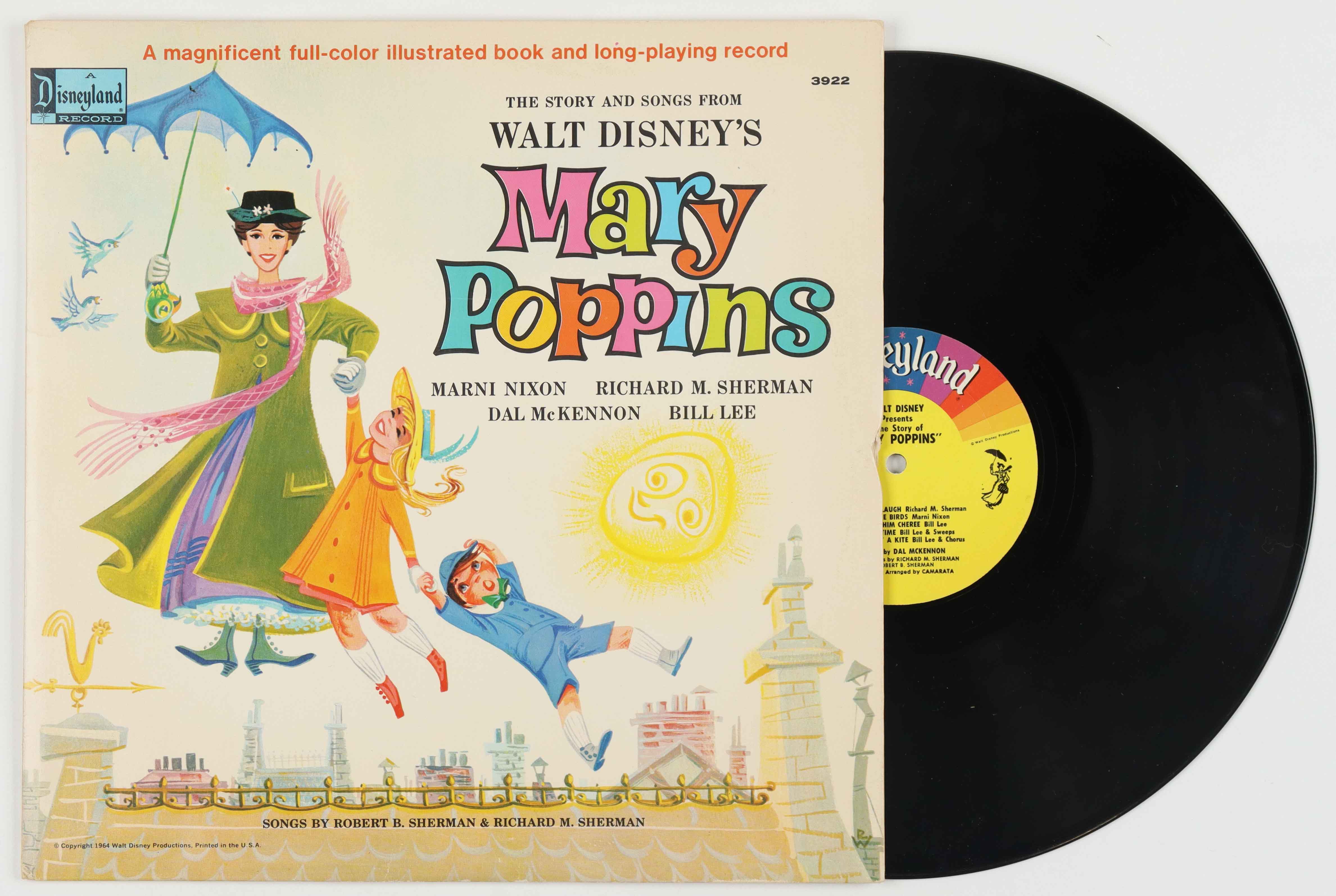 Vintage 1964 Walt Disney's "Mary Poppins" vinyl LP record album. The vinyl record is included with this auction. Please note that original album cover shows signs of natural aging with some creasing and scuffing on the album cover as well as a tear on the front right edge.