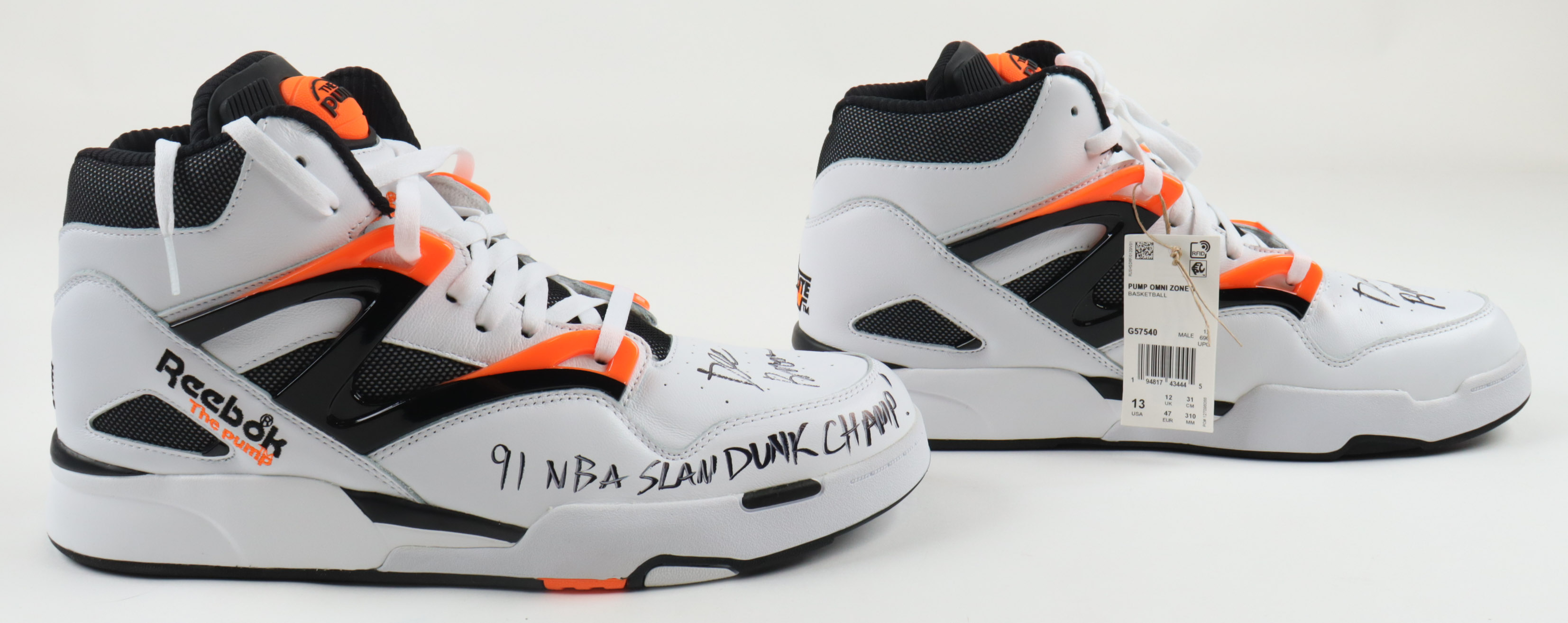 Dee Brown Signed Pair of Reebok Hexalite Pump Basketball Shoes Inscribed "91 NBA Slam Dunk Champ!" with Signed Box (JSA & JSA & JSA)