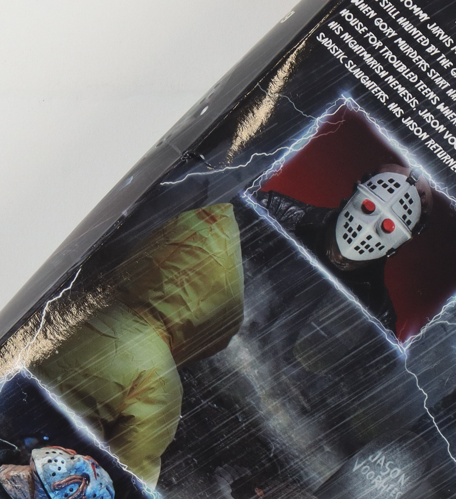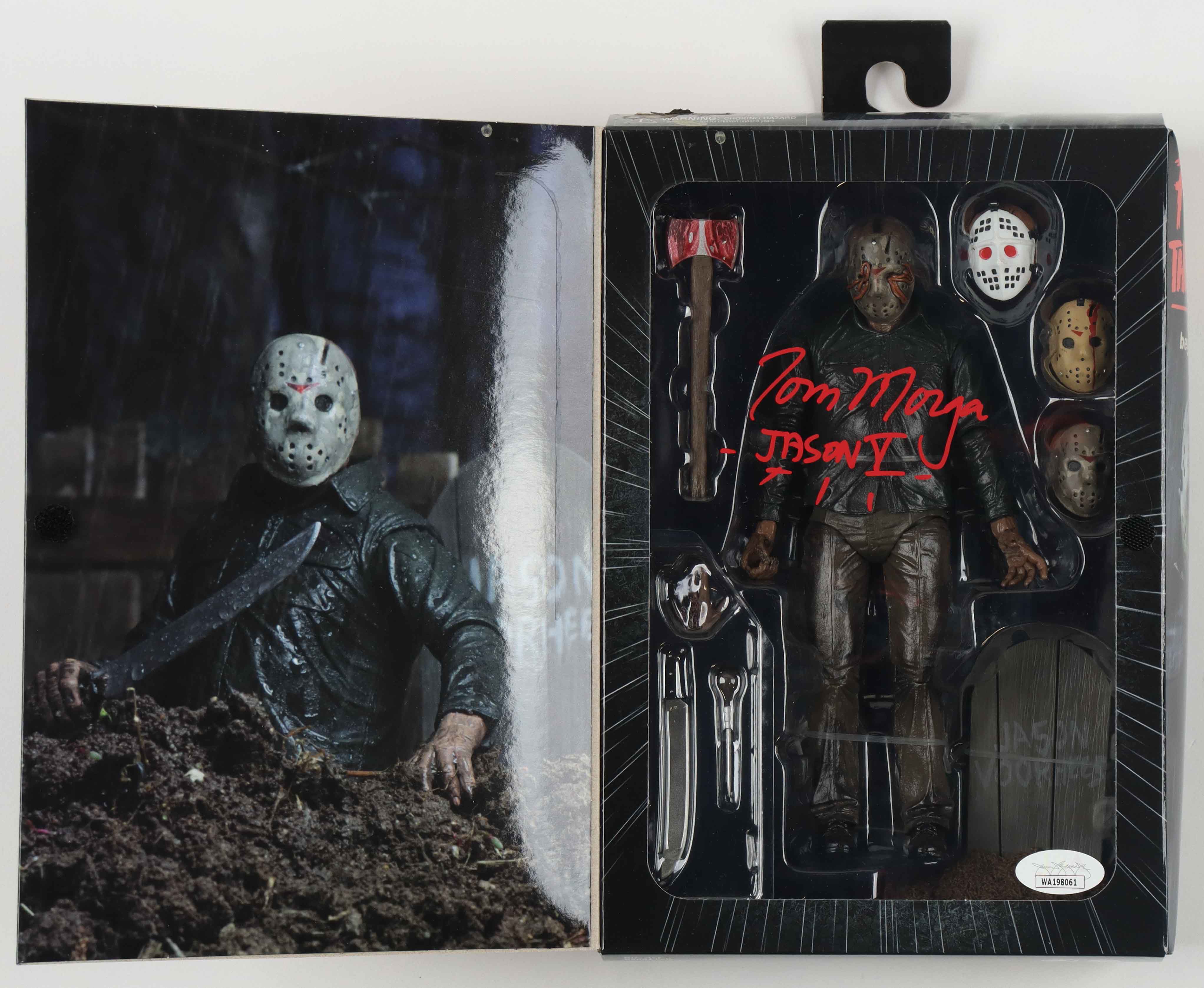 NECA action figure measures approximately 7" in height and includes original packaging. Hand-signed and inscribed on the original packaging by Tom Morga (Jason). Please note, there is creasing on the back left side and staining on the top left corner of the packaging.