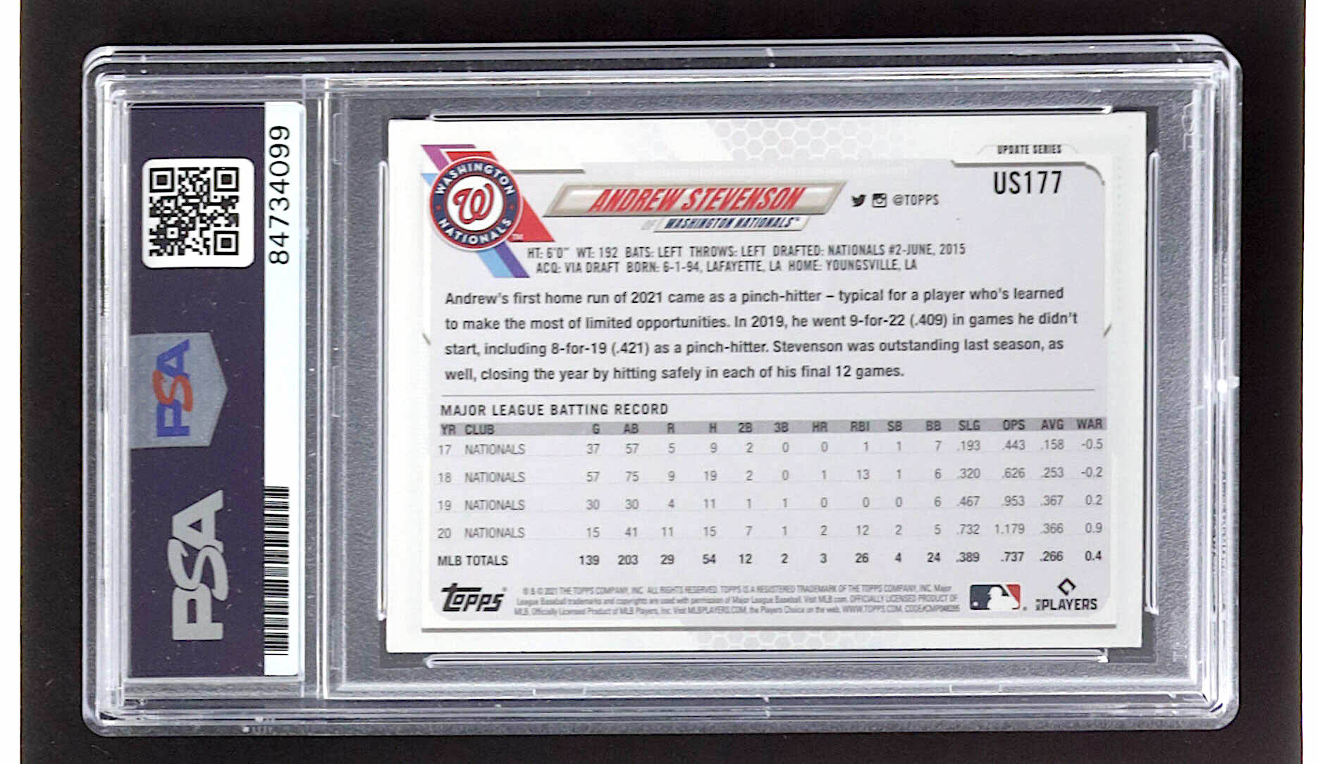 Andrew Stevenson Signed 2021 Topps Update #US177 (PSA)