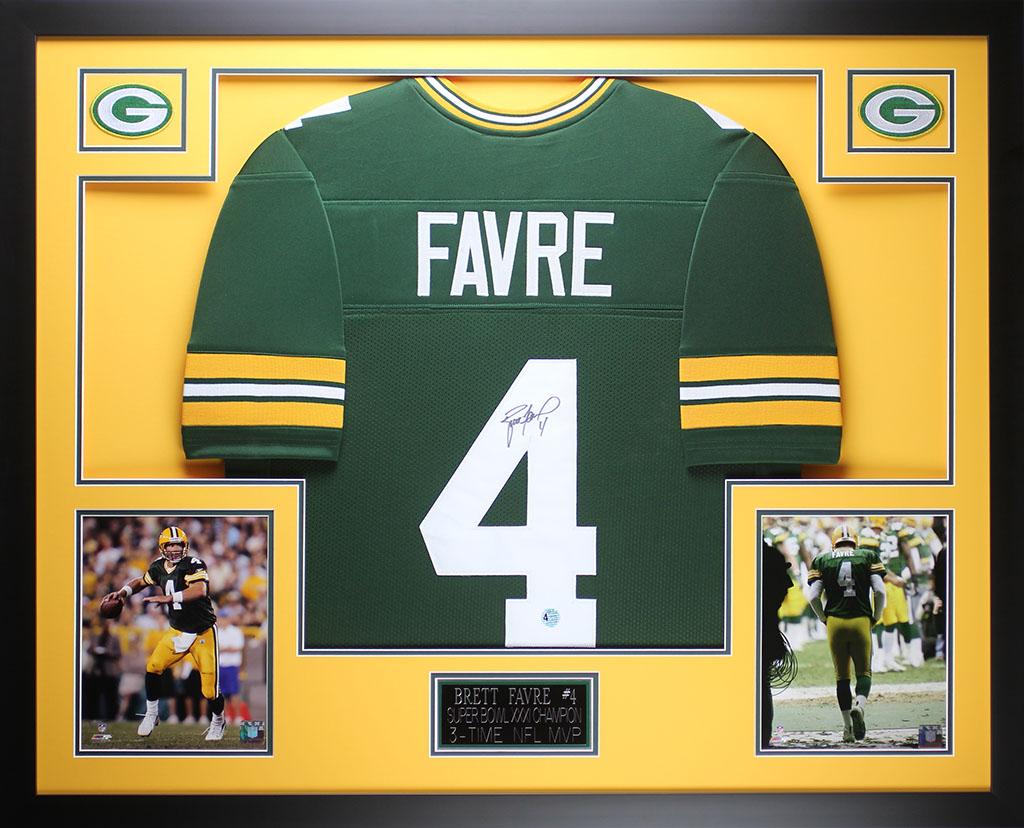 Brett Favre Signed Packers 35" x 43" Custom Framed Jersey (Favre COA)