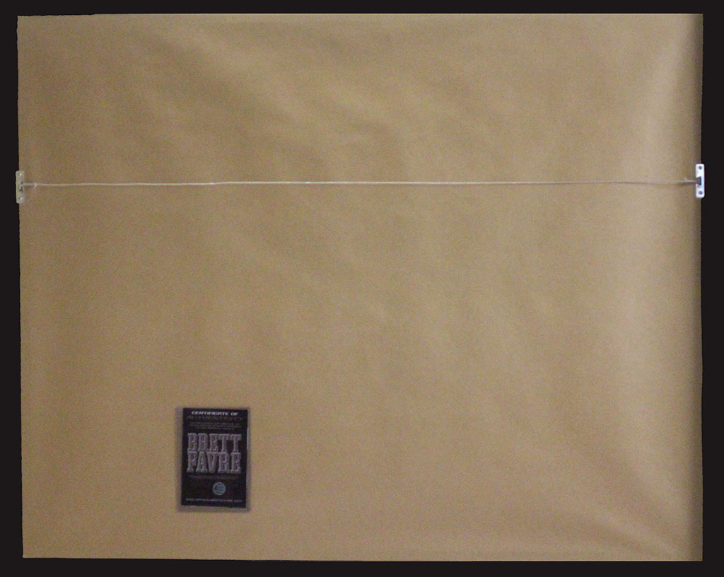 A beautifully framed autographed Brett Favre Packers Jersey. The autograph is certified by Favre and includes a sticker on the Jersey and a matching certificate attached to the back of the frame.