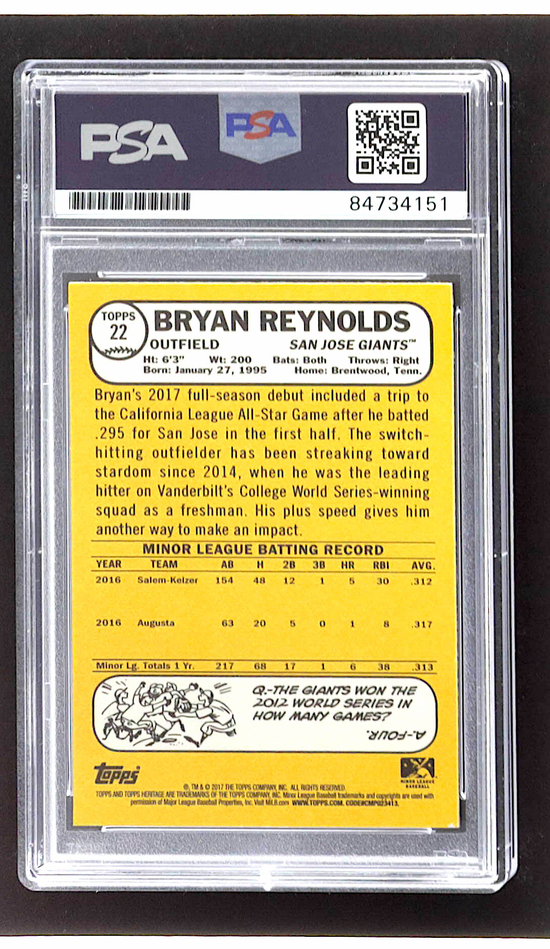 Bryan Reynolds Signed 2017 Topps Heritage Minors #22 (PSA)