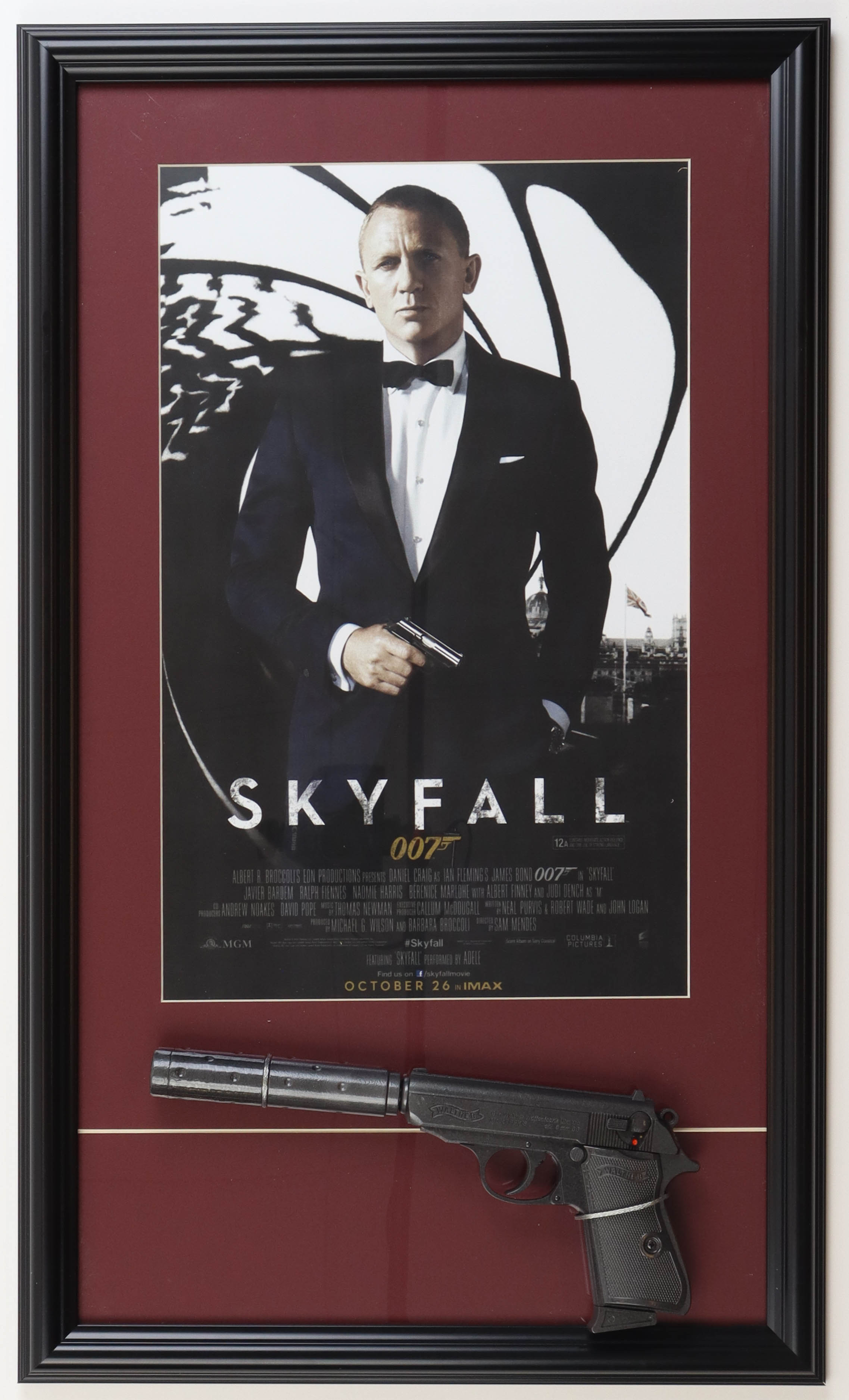 "Skyfall" Custom Framed Print Display with Walther PPK Prop Replica Metal Pistol