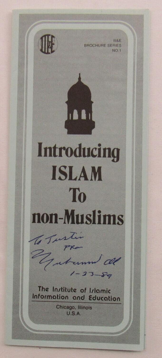 Islam brochure measures 3.5" x 8.5" and has been hand-signed by Muhammad Ali (D. 2016).