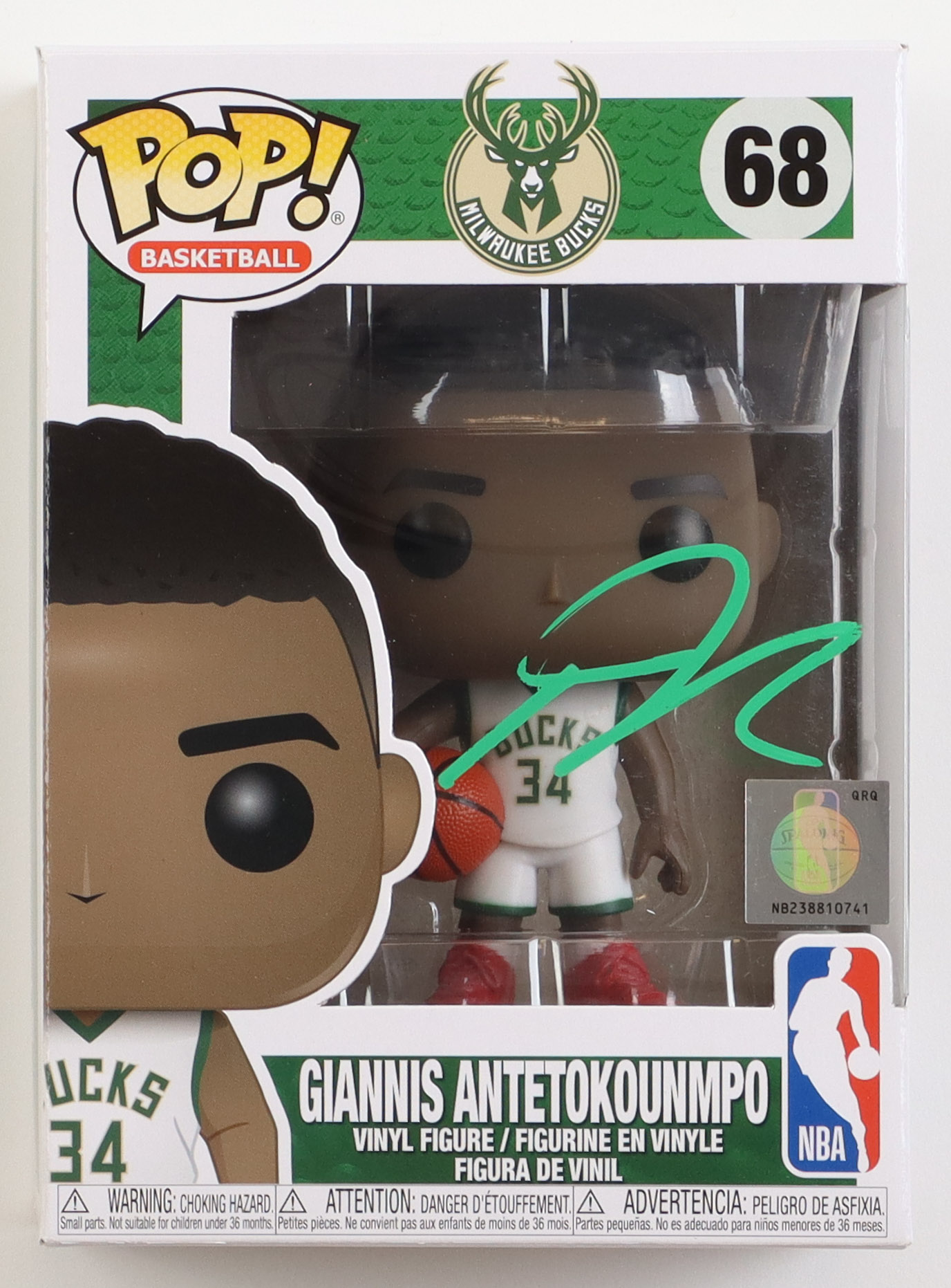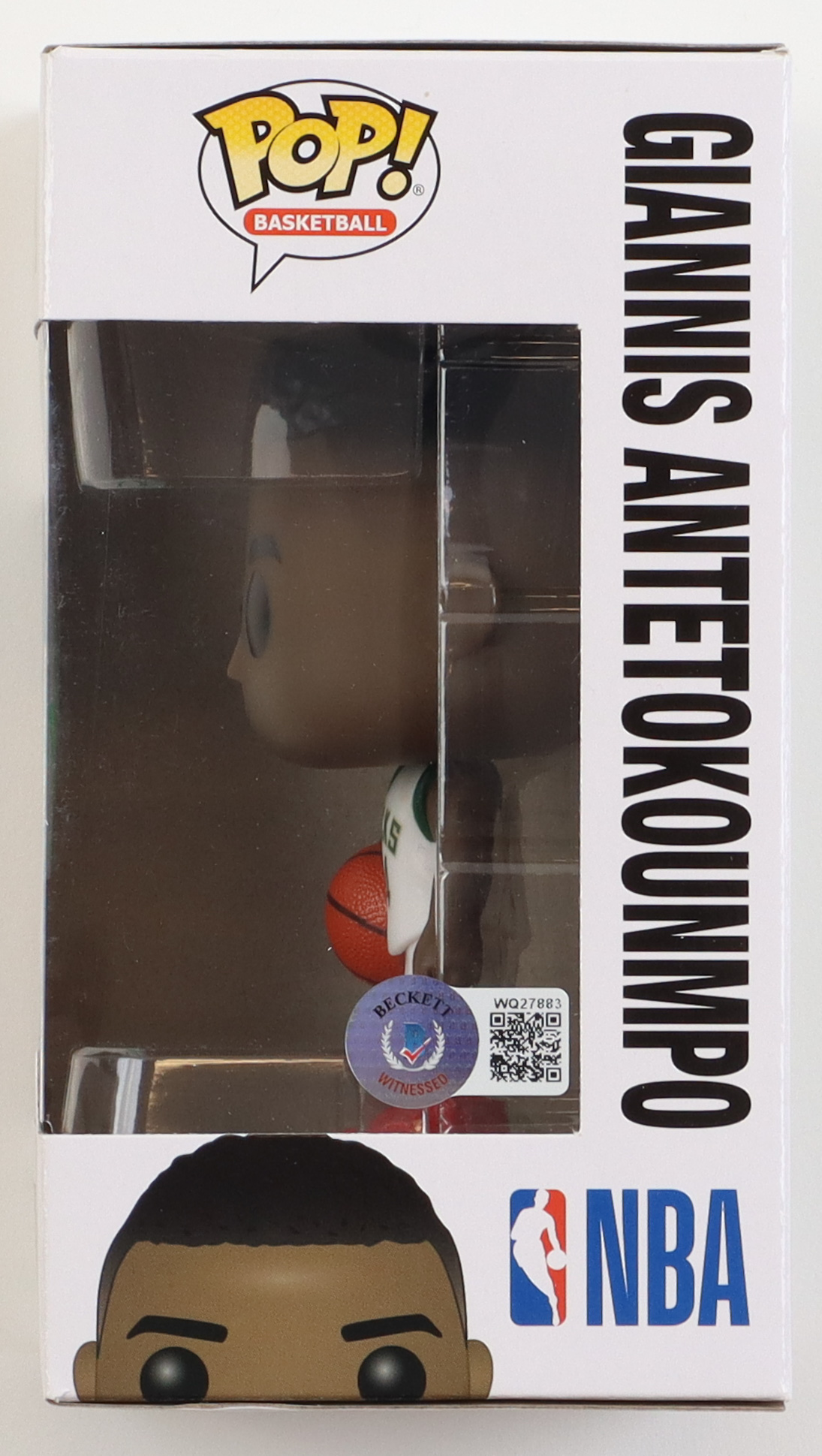 Funko Pop! vinyl figure measures approximately 4" tall and has been hand-signed on the packaging by Giannis Antetokounmpo (Milwaukee Bucks).