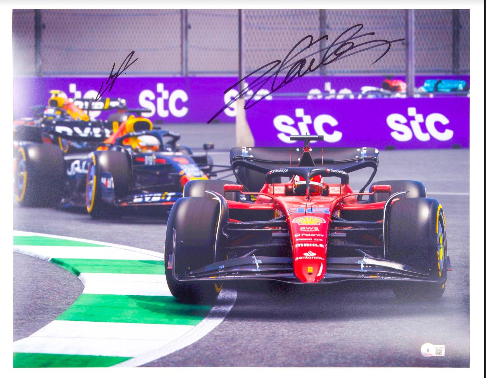 Duel Signed Photograph 16' x 20' By Sergio Perez & Charles Leclerc