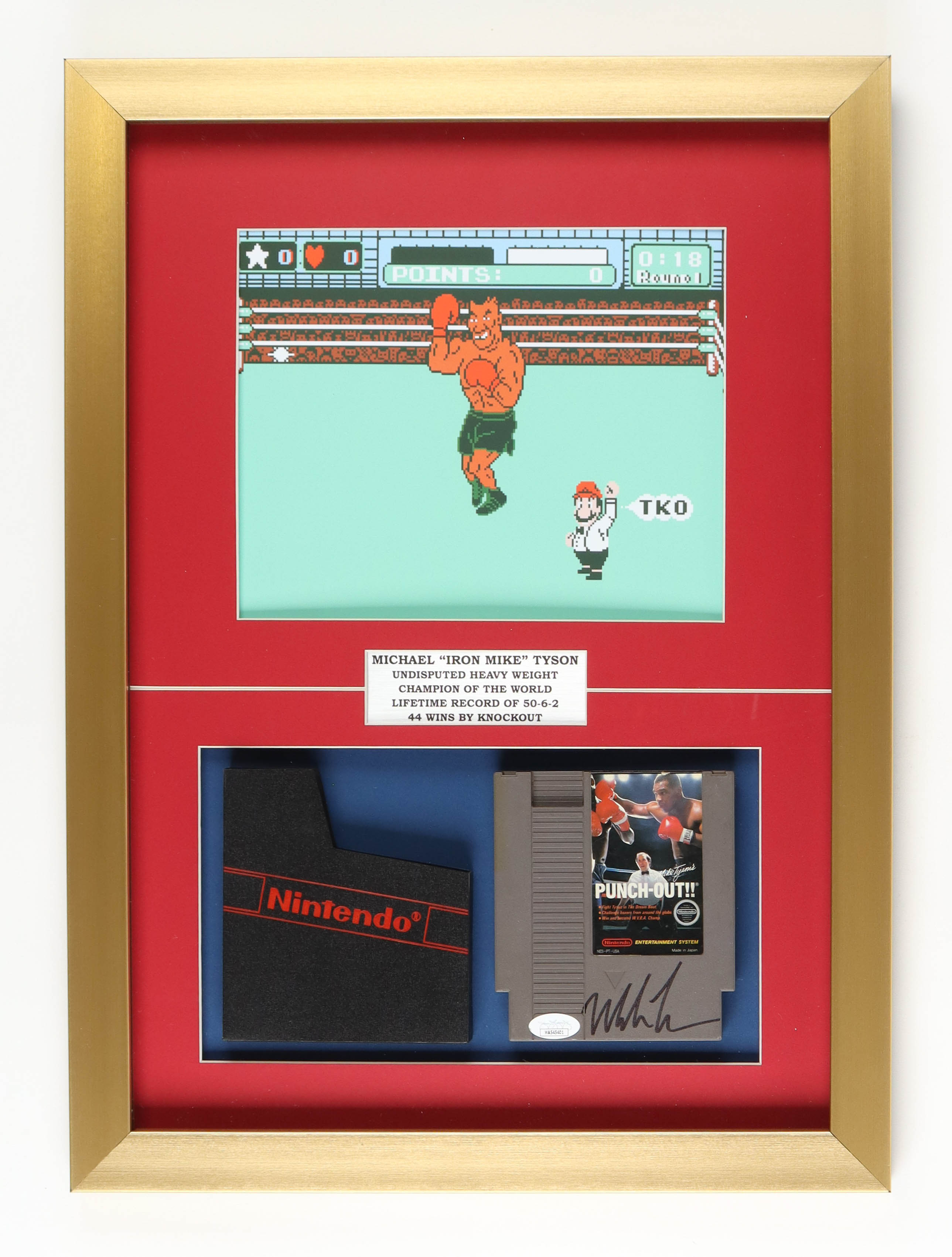 Mike Tyson Signed 1987 "Punch-Out!!" Vintage Nintendo Video Game Cartridge Custom Framed Shadowbox Display with Original Sleeve (JSA)