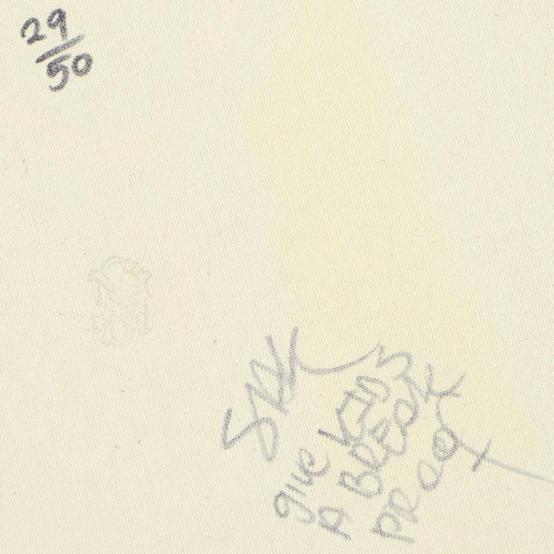 "Martini" is a hand embellished limited edition hand pulled silkscreen on canvas by Andy Warhol protege Steve Kaufman (1960-2010). This piece is numbered 29/50 and hand-signed inverso. Includes letter of authenticity. As is common with Kaufman's works, this piece may have perceived minor flaws, but is in overall good condition. Measures approx. 24" x 24" (image).