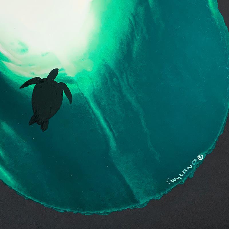 "Weightless in a green Sea" is an original painting, watercolor on deckle edge paper by Wyland. Hand-signed by the artist, the piece comes custom framed and with a letter of authenticity. Measures approximately 30" x 30" (framed), 19.5" x 19.5" (image).