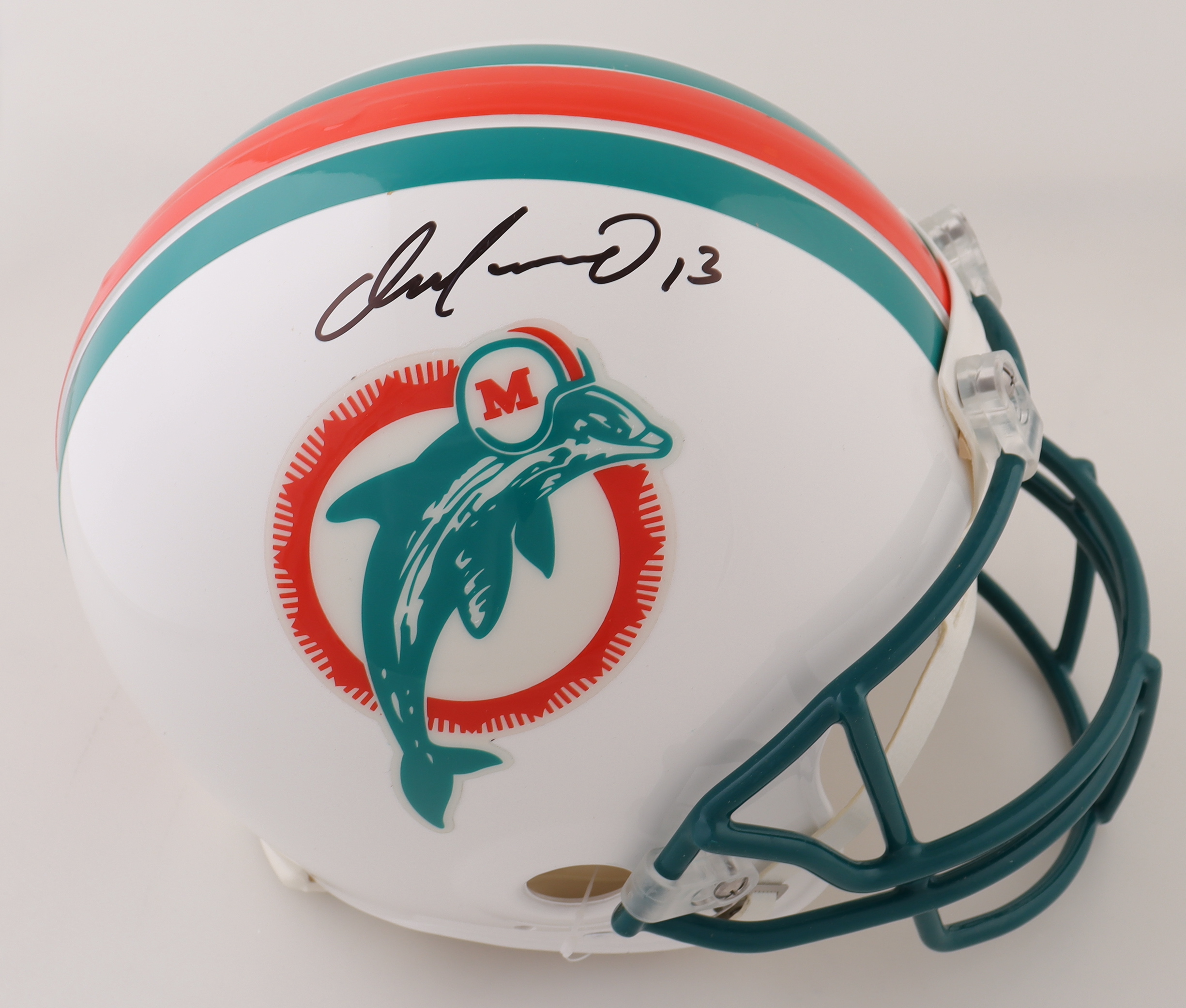Riddell Miami Dolphins full-size 89-96 Throwback replica helmet. Hand-signed by Dan Marino (HOF).