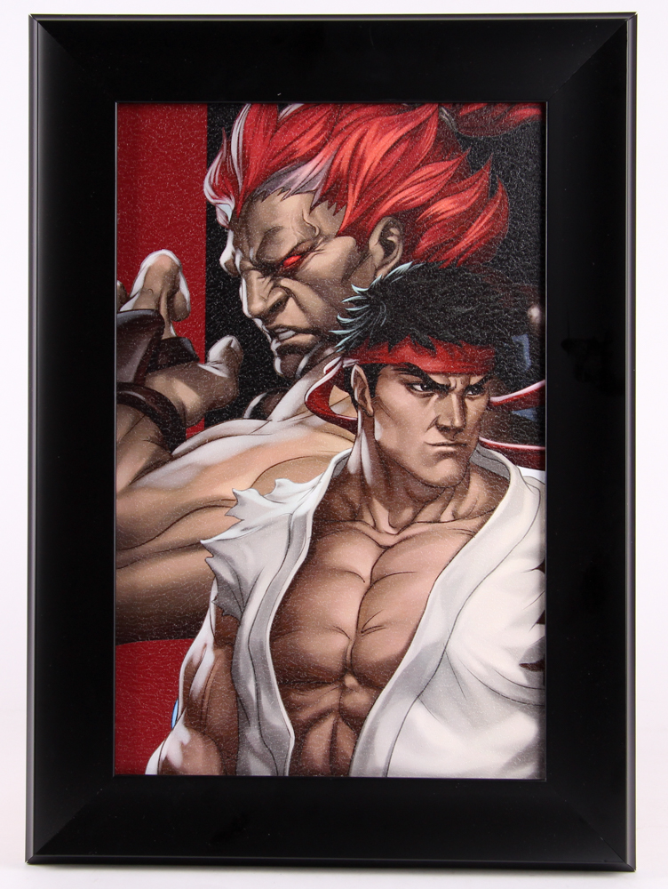 "Street Fighter Ryu & Akuma" 15x21 Custom Framed Textured Lithograph