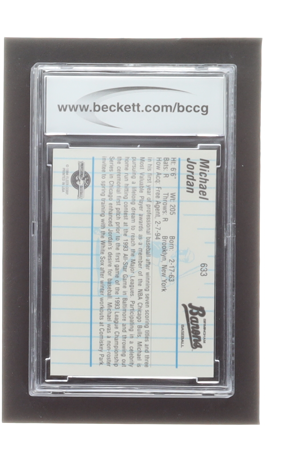 Michael Jordan 1994 Birmingham Barons Fleer / ProCards #633 RC / Barons Fully Visible on Jersey (BCCG 10)