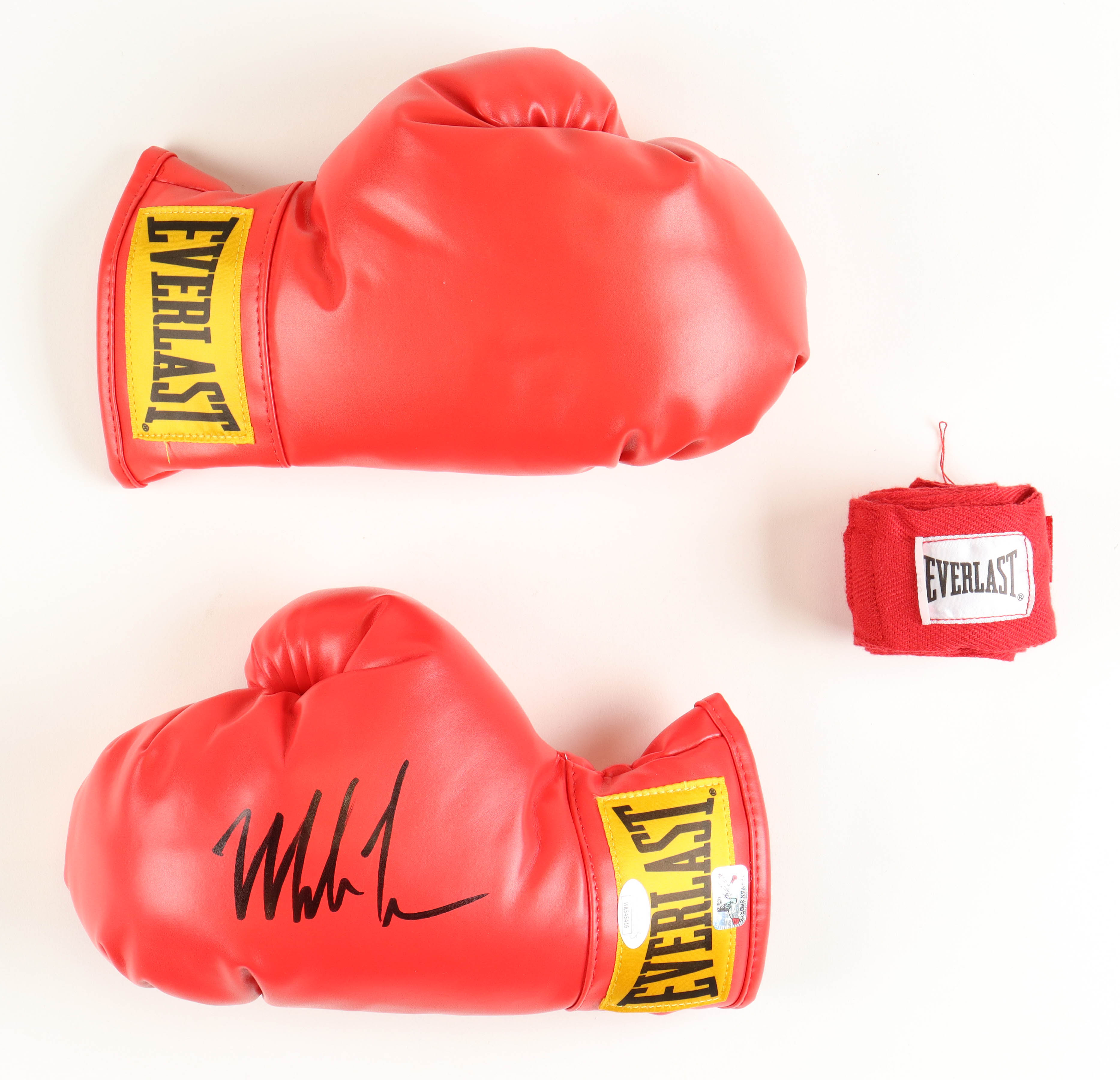 Pair of Everlast boxing gloves. The left glove has been hand-signed by Mike Tyson (HOF).