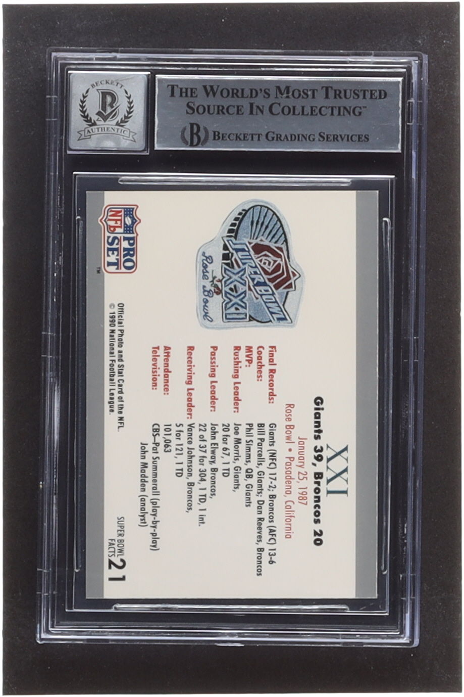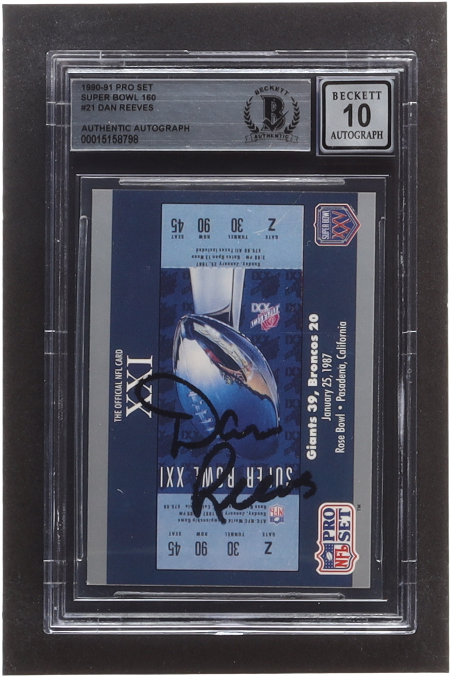 Dan Reeves Signed 1990-91 Pro Set Super Bowl 160 #21 SB XXI Ticket (BGS)