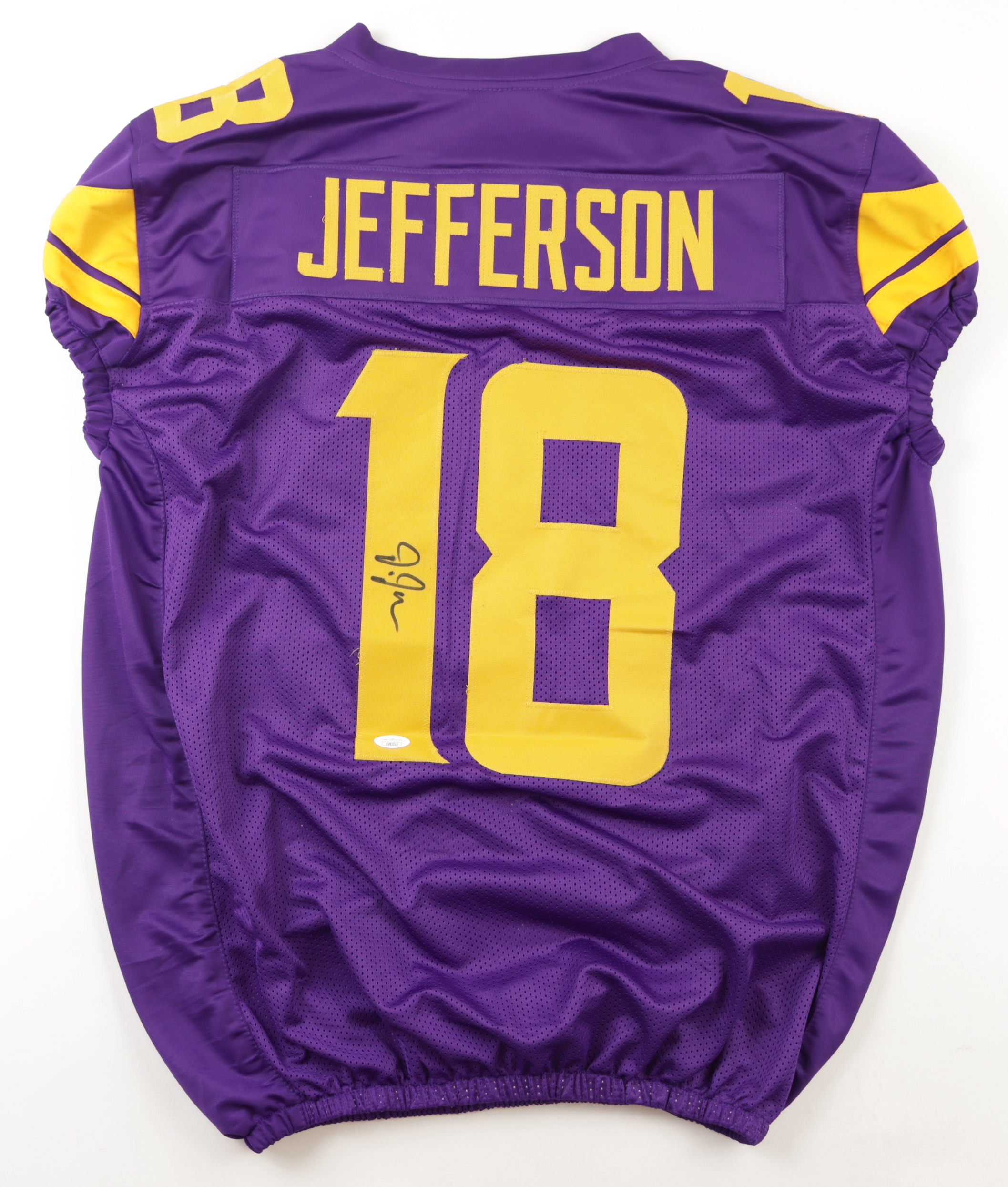 Custom on-field style jersey. Everything sewn on, size XL. Hand-signed by Justin Jefferson.