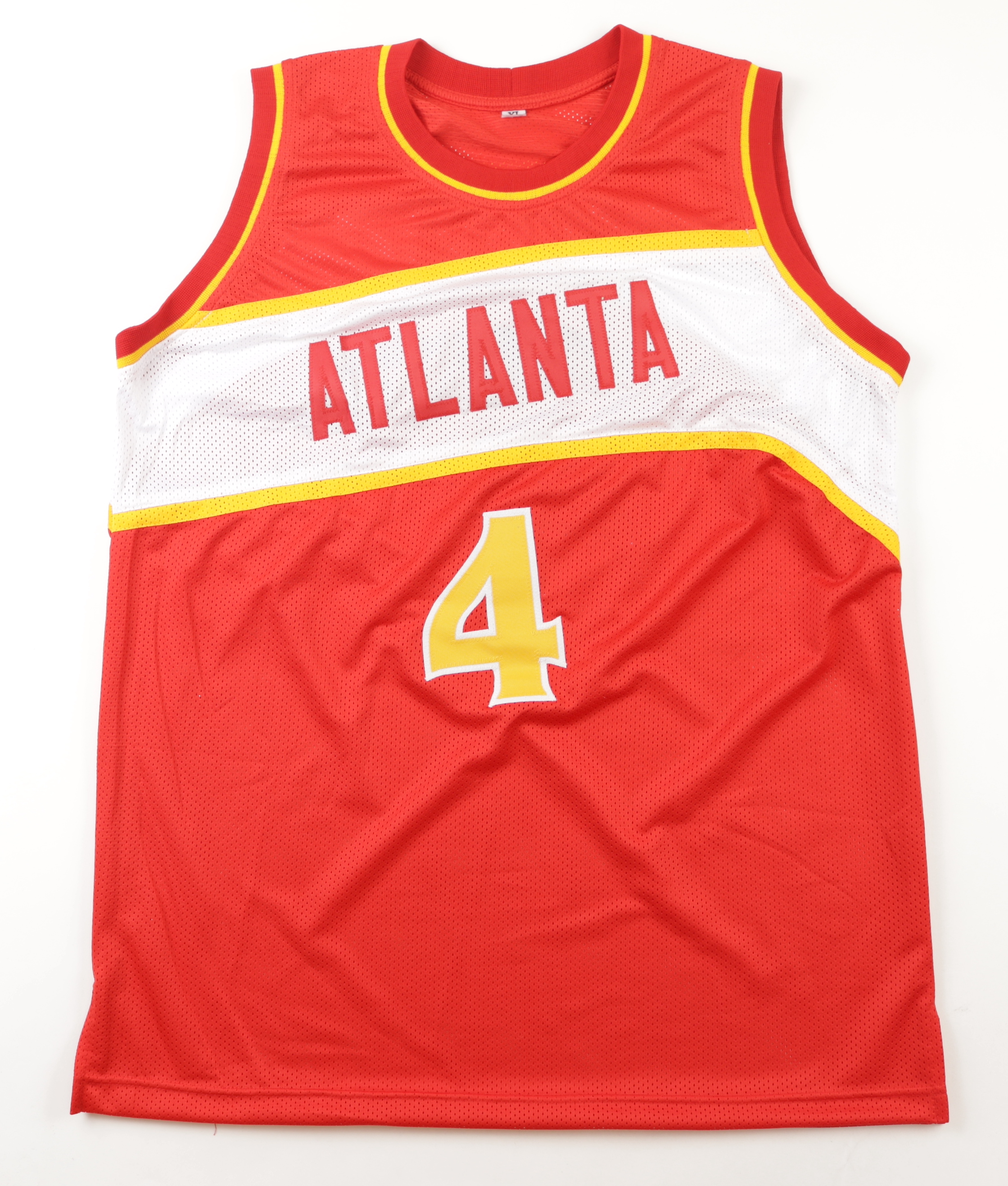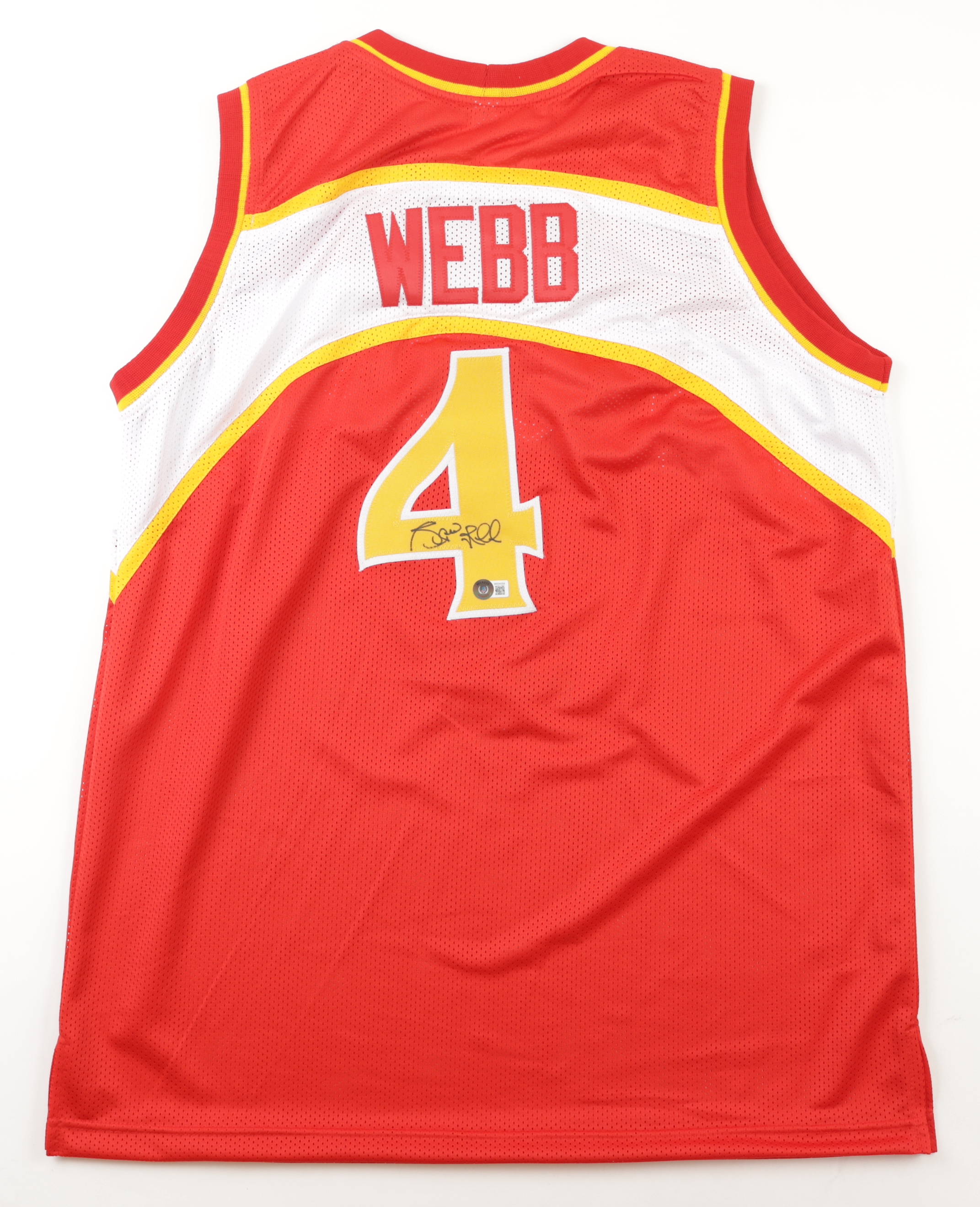 Custom on-court style jersey. Everything sewn on, size XL. Hand-signed by Spud Webb.