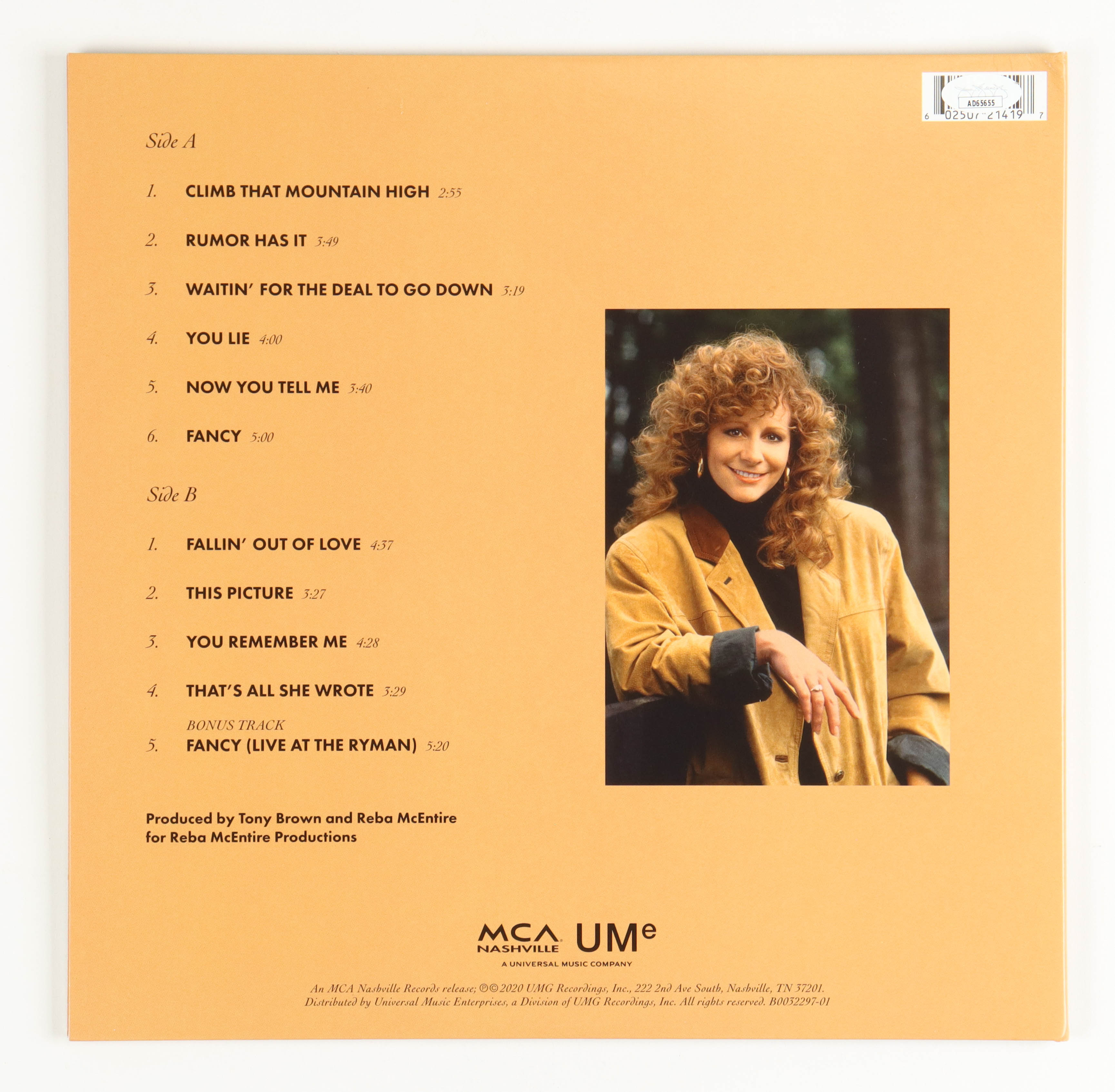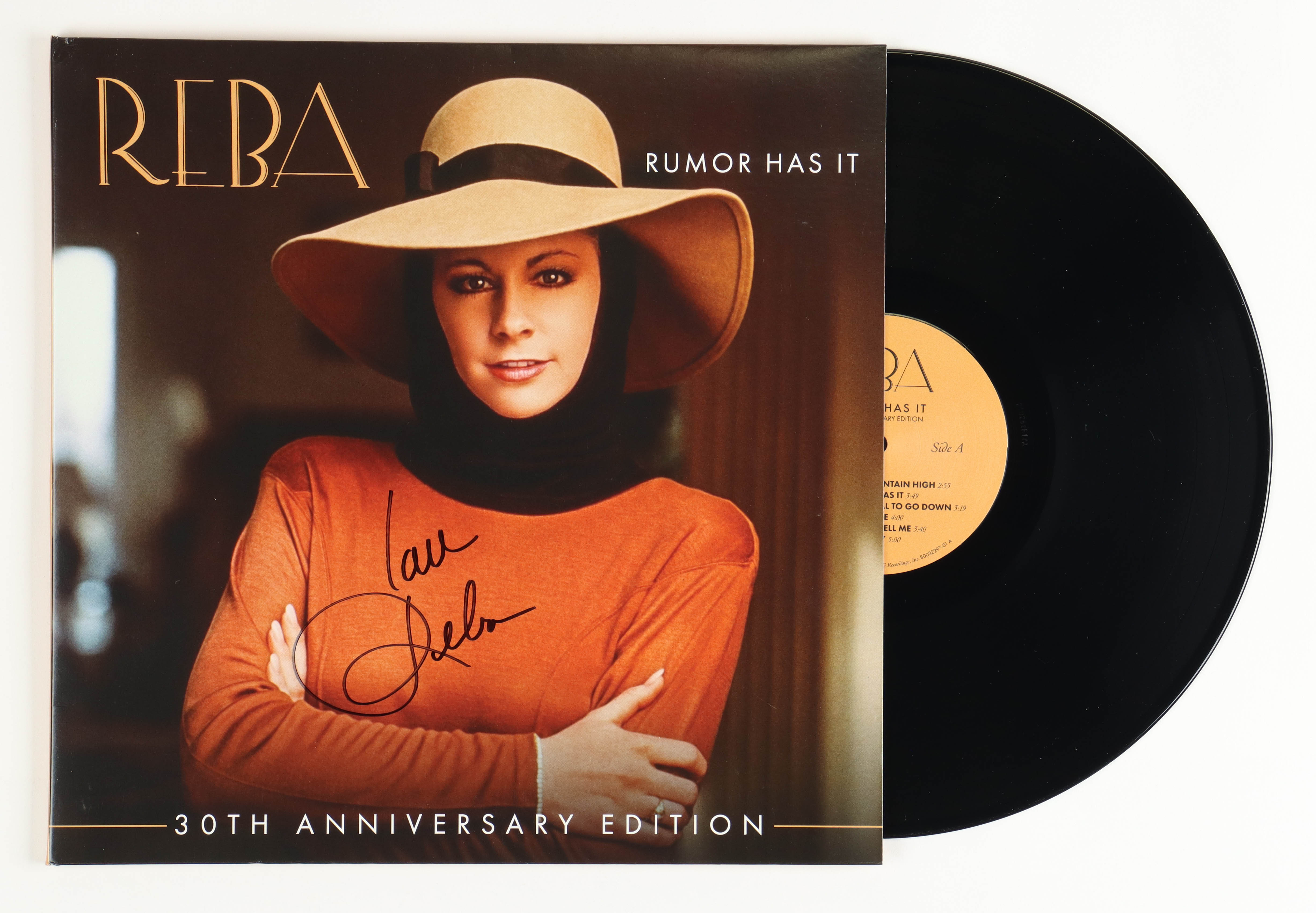 "Rumor Has It" vinyl record album. Cover has been hand-signed and inscribed by Reba McEntire.