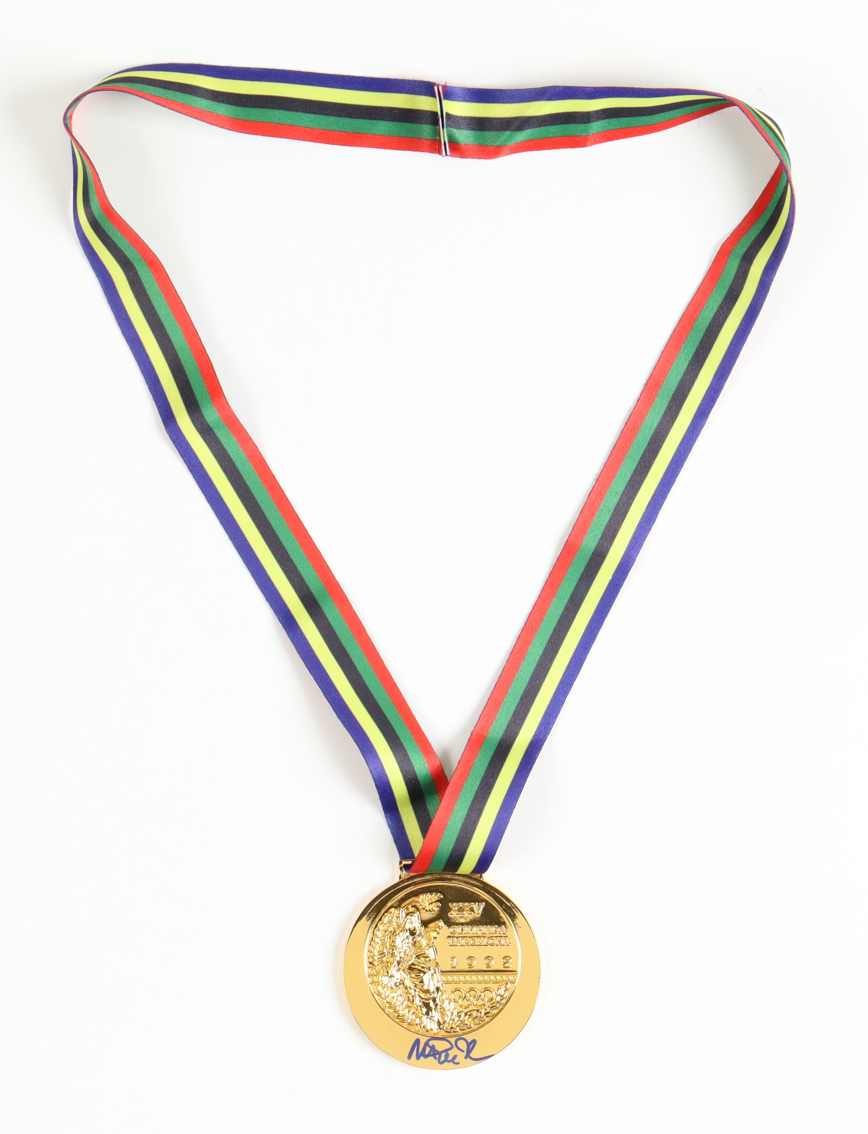 Replica gold medal has been hand-signed by Magic Johnson (Team USA, HOF).