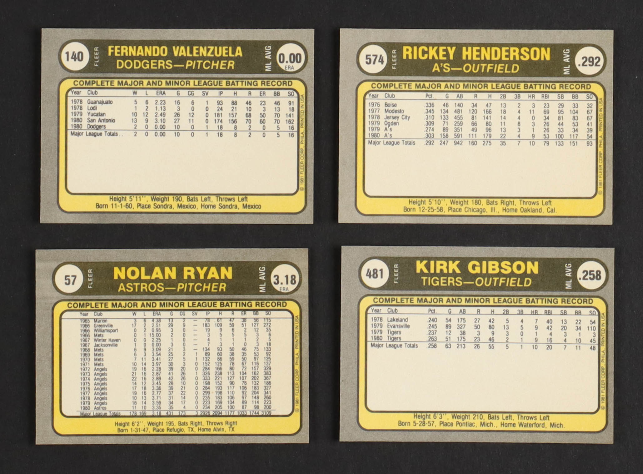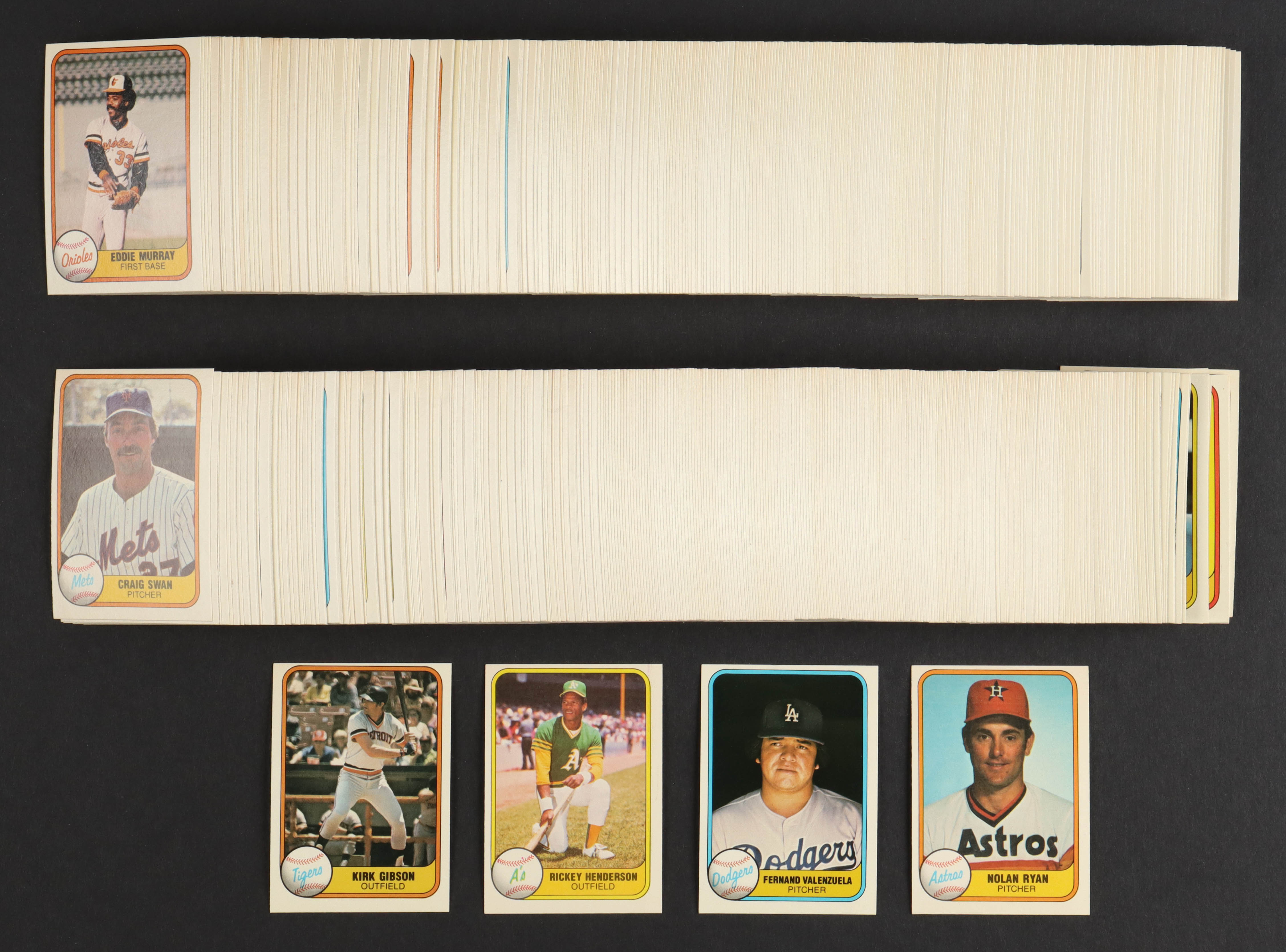 1981 Fleer Baseball Complete Set of (660) Cards with Fernando Valenzuela #140 RC, Rickey Henderson #574, Nolan Ryan #57, Kirk Gibson #481 RC