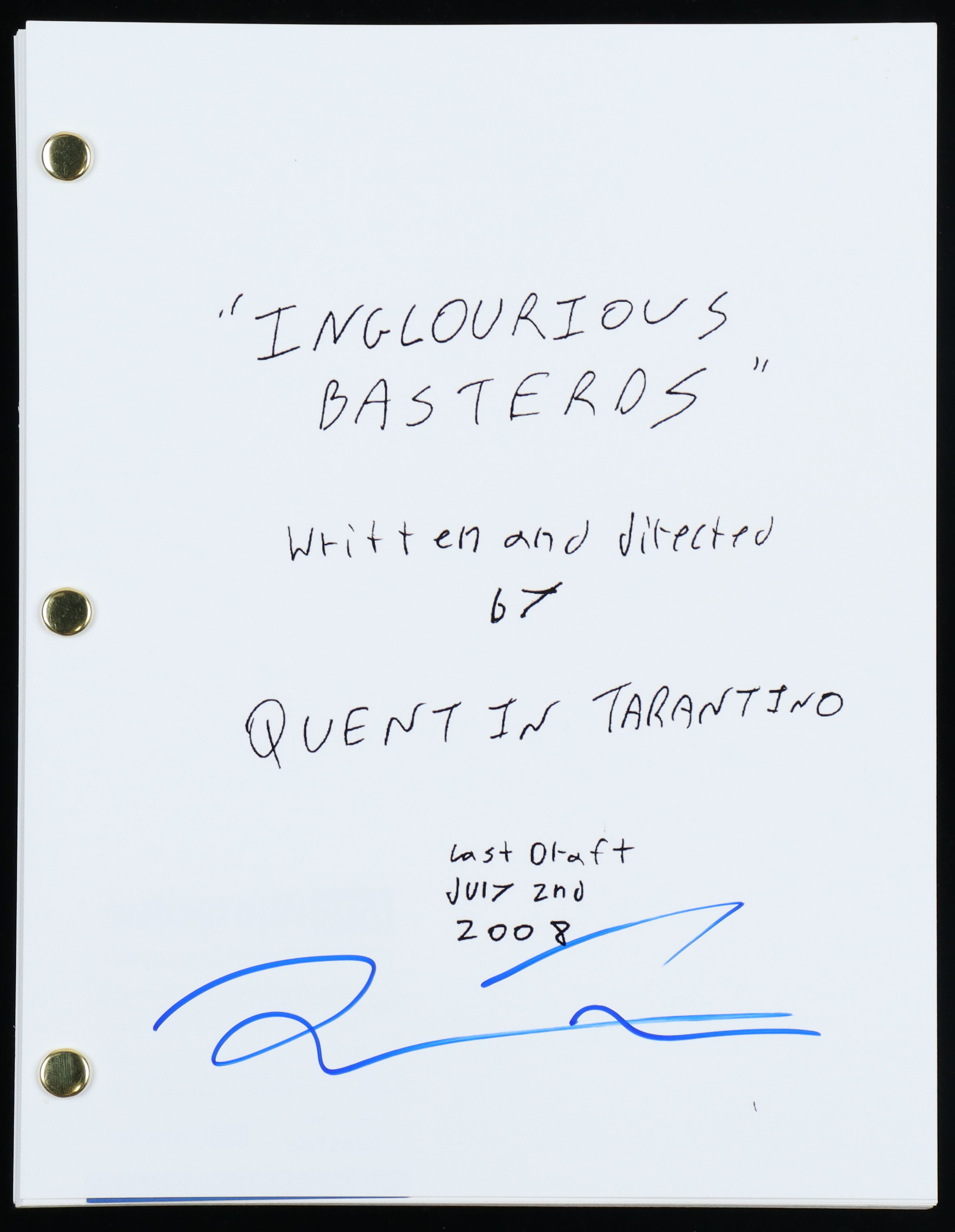 Replica movie script. Hand-signed by Quentin Tarantino.