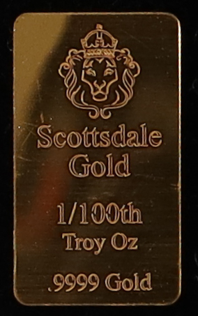 Scottsdale Gold 1/100 Troy Oz .9999 Fine Gold Bullion Bar