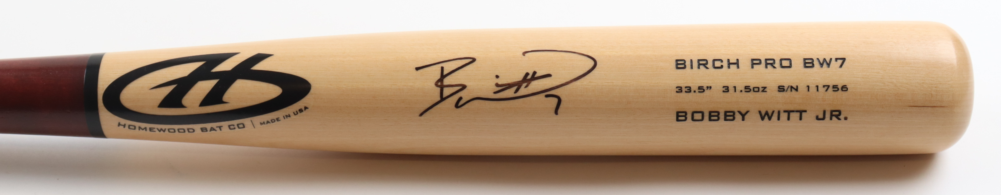 Homewood Bat Company Player Model Baseball bat. Hand-signed by Bobby Witt Jr. (Kansas City Royals).