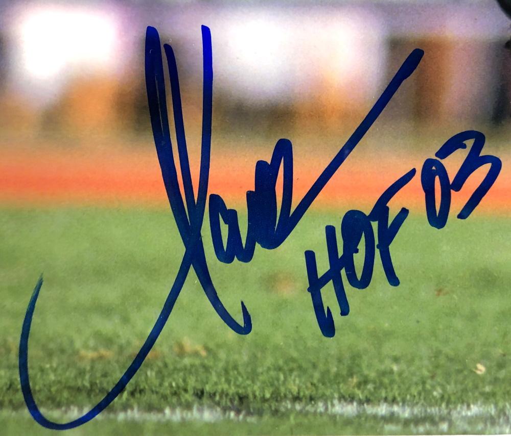 Custom frame measures 16" x 20" in size and has been hand-signed and inscribed by Marcus Allen (Los Angeles Raiders)
