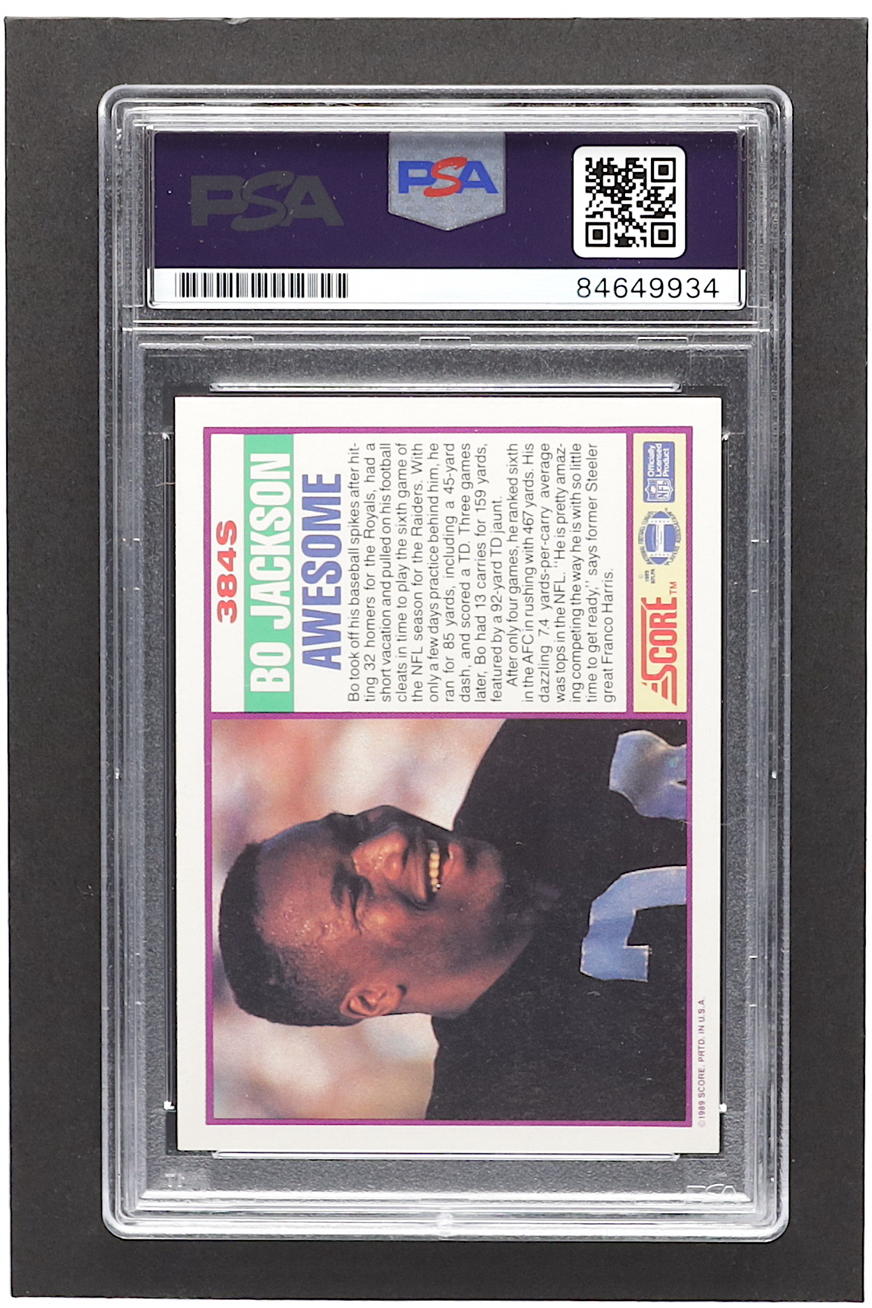 Bo Jackson Signed 1989 Score Supplemental #384S (PSA)