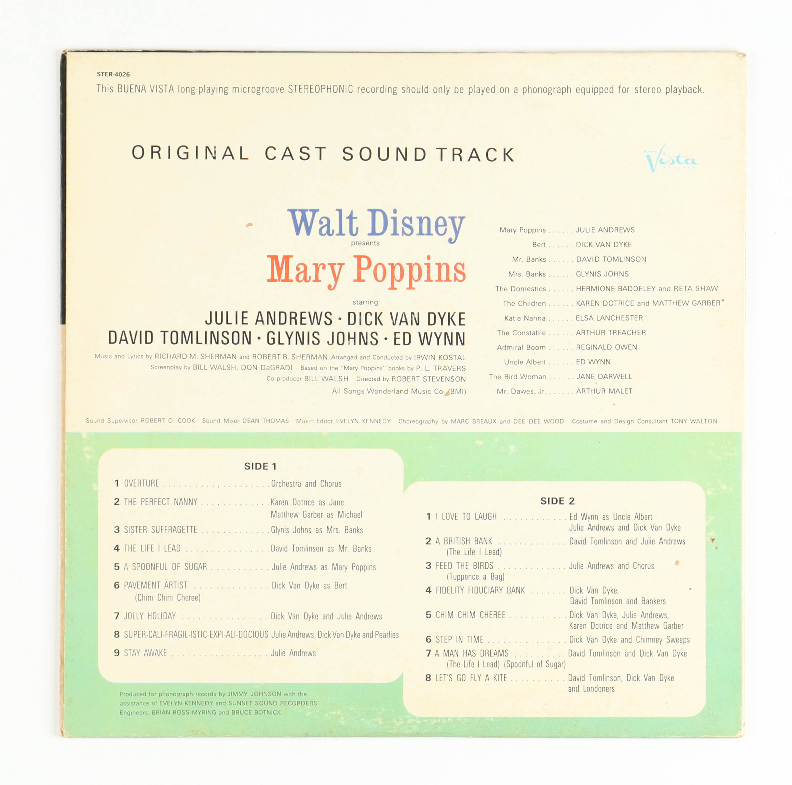 1964 Walt Disney's "Mary Poppins" Original Motion Picture Soundtrack Vinyl Record Album