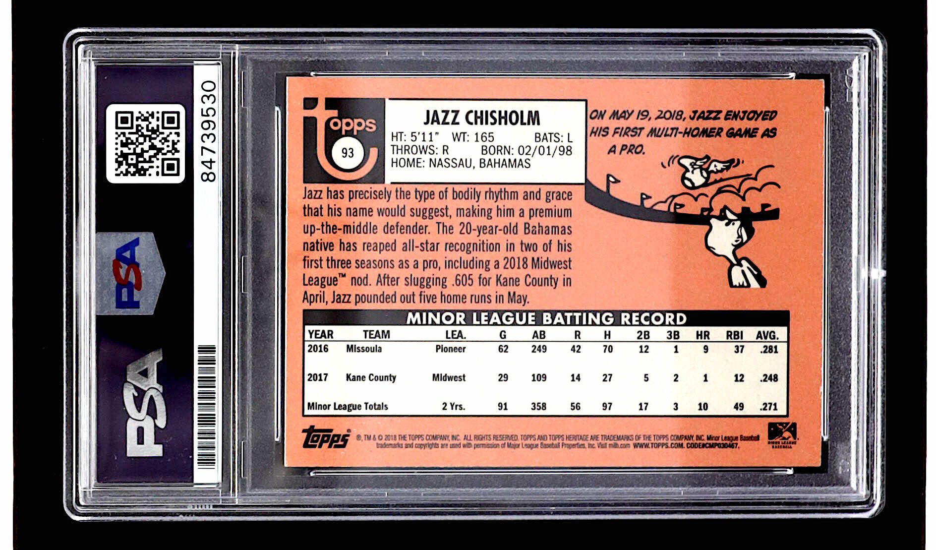 Jazz Chisholm Signed 2018 Topps Heritage Minors #93 (PSA)