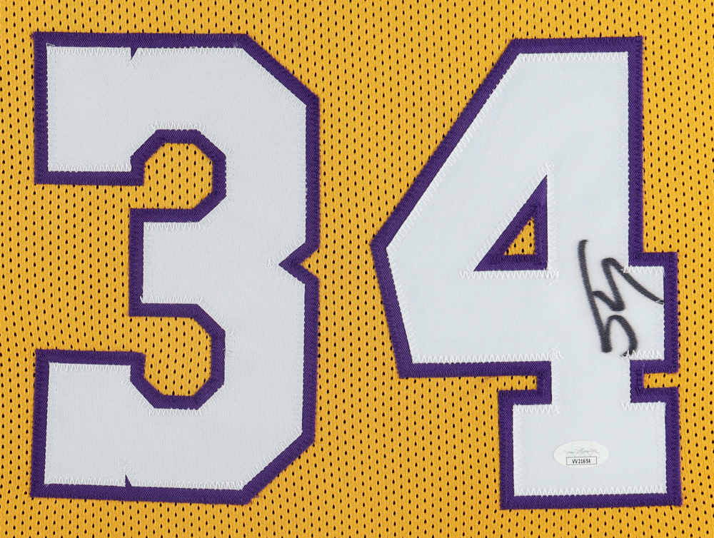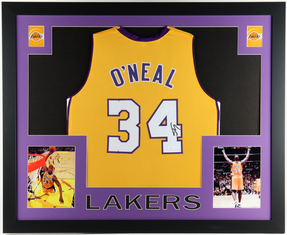 Custom frame measures approximately 35" x 43" in size and features a jersey hand-signed by Shaquille O'Neal (HOF).