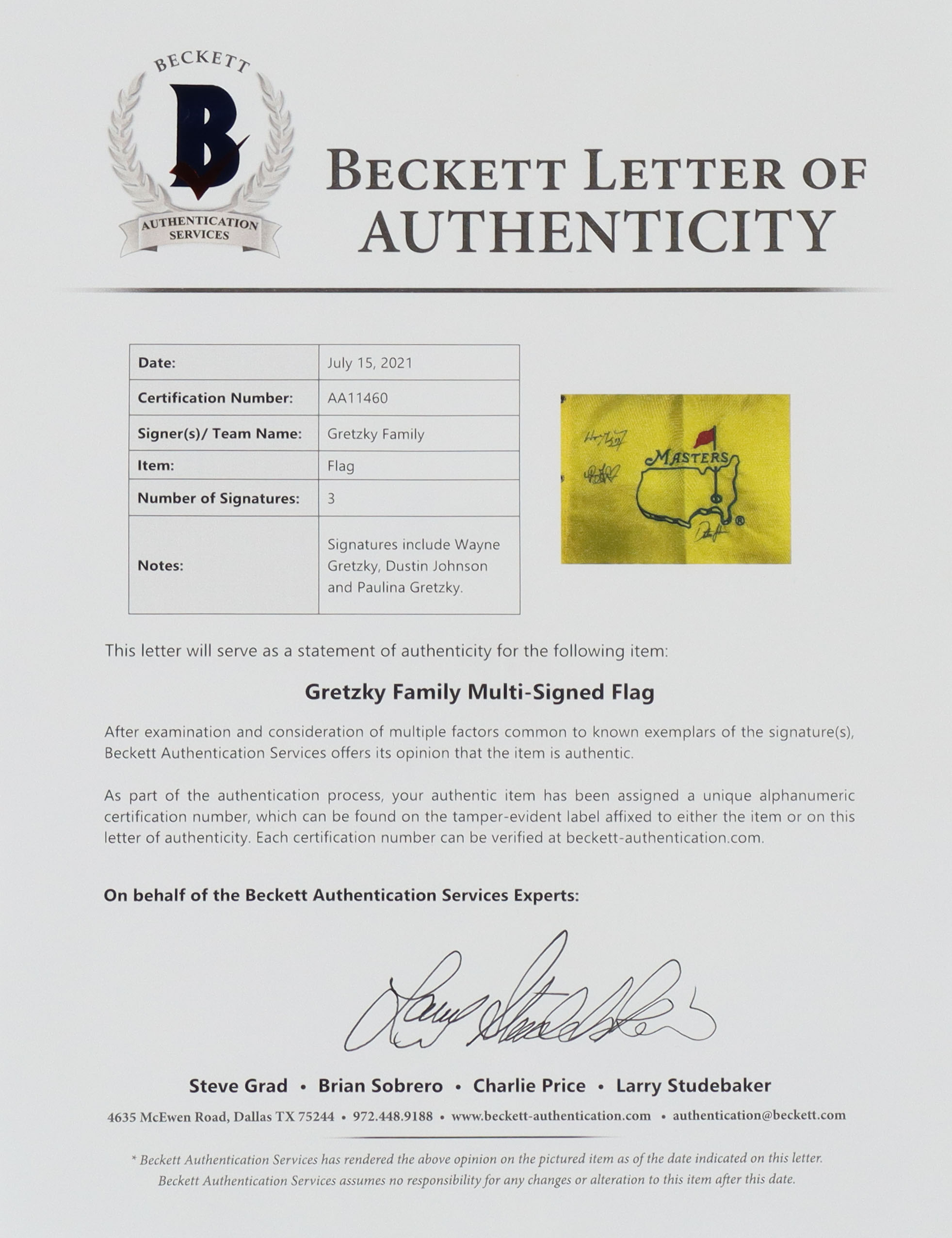 Wayne Gretzky, Paulina Gretzky & Dustin Johnson Signed Masters Tournament Pin Flag (Beckett)