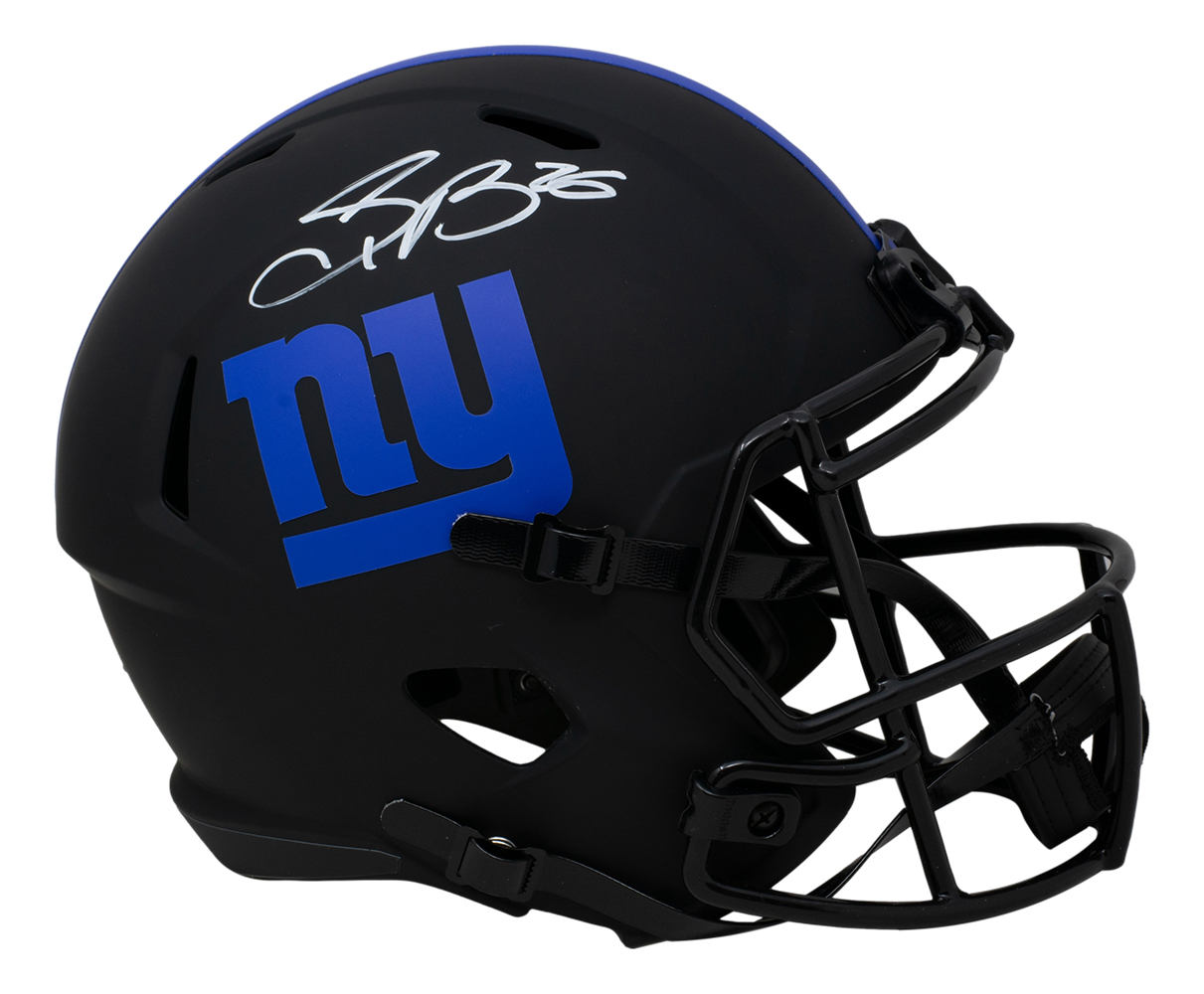 Riddell New York Giants full-size replica Eclipse alternate speed helmet. Hand-signed by Saquon Barkley.