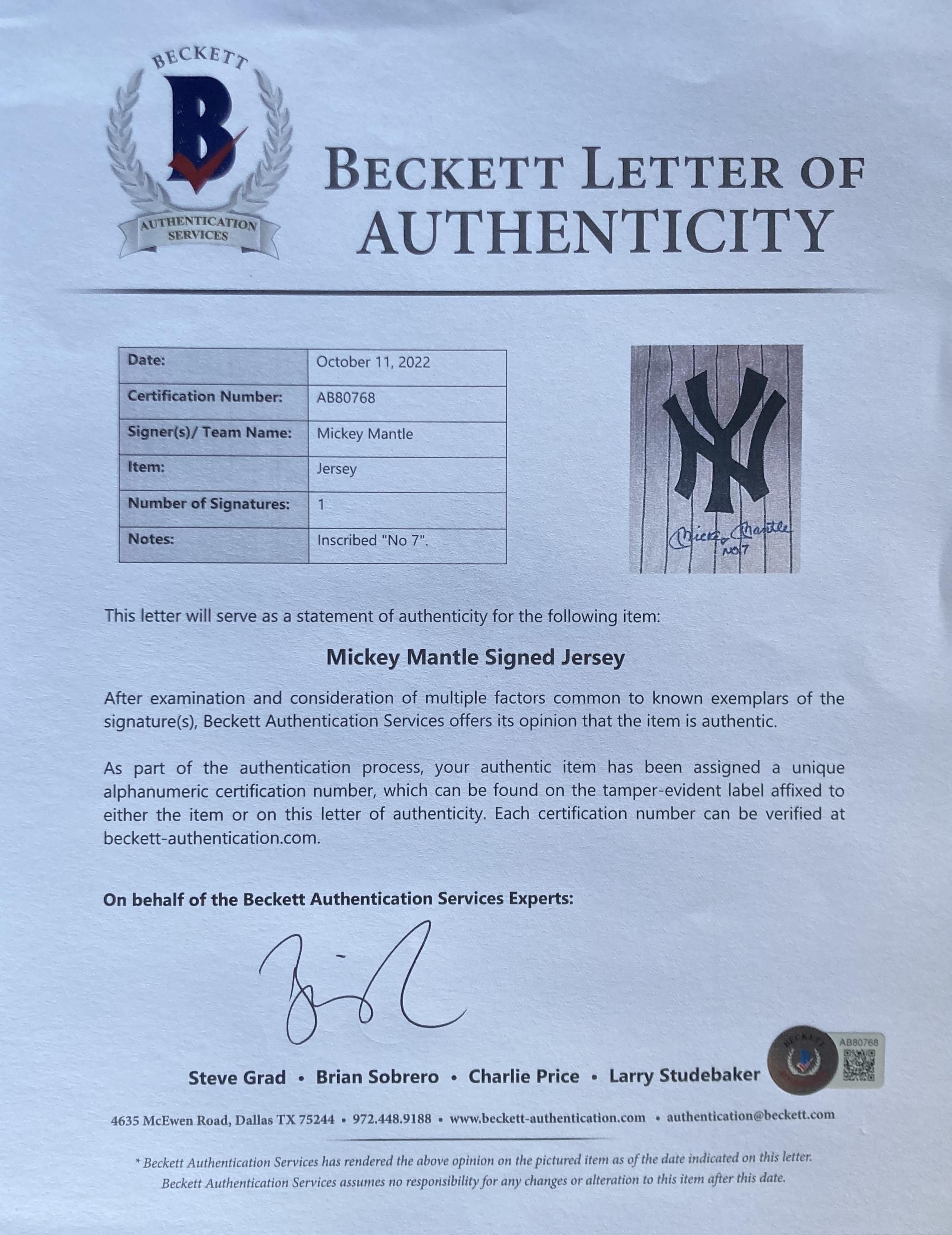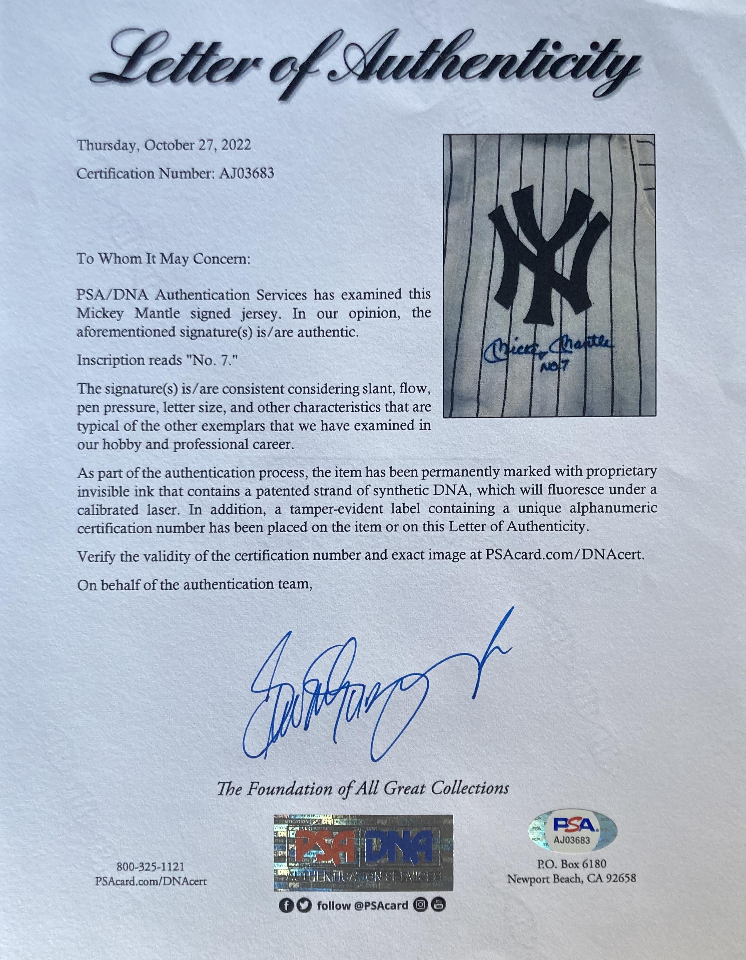 Mickey Mantle Signed Mitchell & Ness 1951 Yankees Throwback Jersey Inscribed "No 7" (PSA LOA & Beckett LOA)